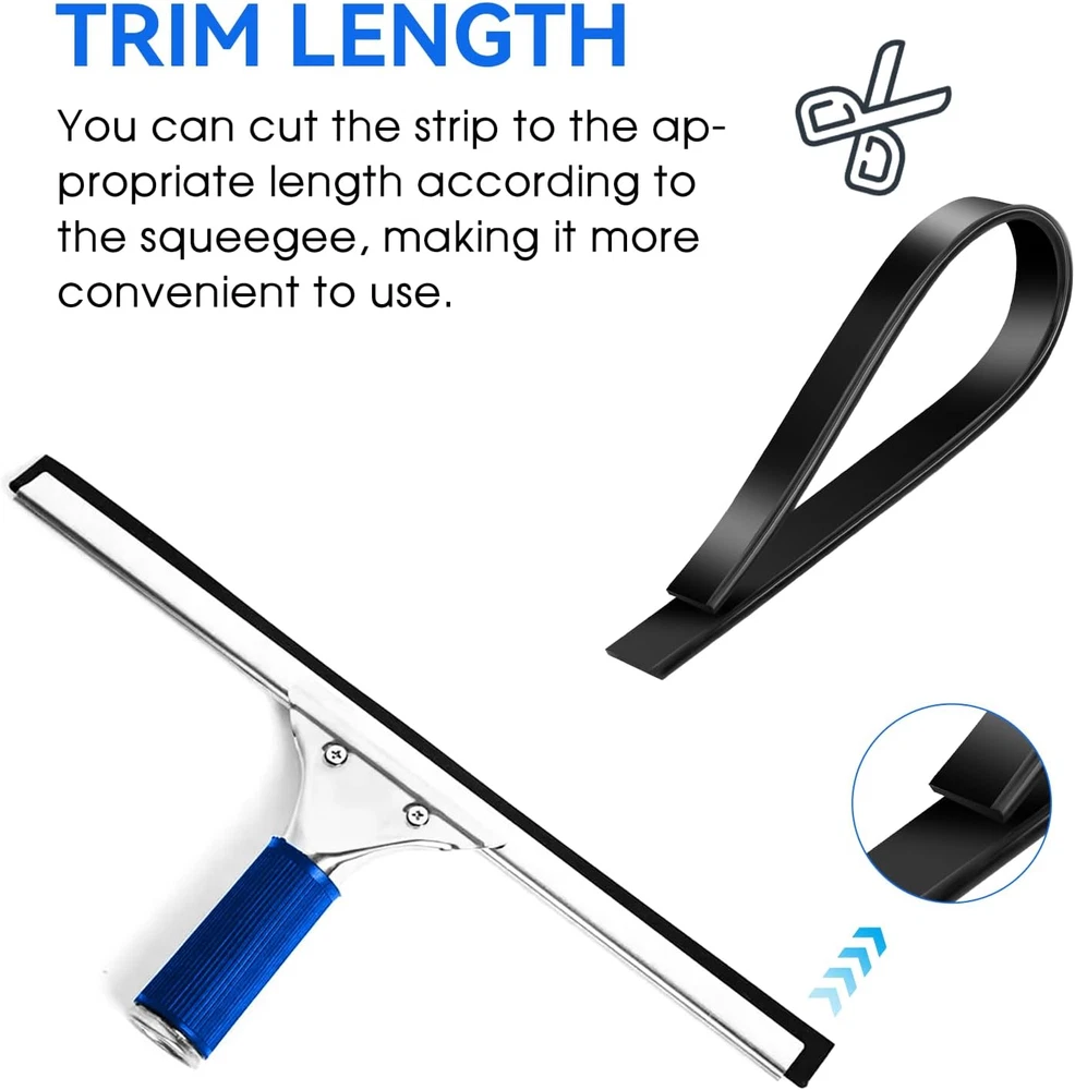Squeegee Rubber Replacement 41Inch Roll Squeegee Blade Silicone Window Rubber ✅ Squeegee Rubber Replacement, 41inch/roll Squeegee Blade Silicone Window Rubber Squeegee Replacement Blades Black Squeegee Scrubber Squeegee Refill Blades Head for Windows, Shower Doors, Glass Cleaning Product Description: The Squeegee Rubber Replacement Blade is a high-quality silicone squeegee refill designed for cleaning windows, shower doors, and glass surfaces. With a 41-inch roll of durable black silicone, this blade is the ideal solution for streak-free, effective cleaning in both residential and commercial environments. It provides consistent performance, leaving glass surfaces spotless and without residue. Features: Durable Silicone Material : Made from premium silicone rubber, this squeegee blade ensures long-lasting performance without compromising flexibility or cleaning efficiency. Perfect for Various Surfaces : Ideal for use on windows, mirrors, glass shower doors, and other smooth glass surfaces, offering an effortless cleaning experience. 41-Inch Length : The 41-inch roll provides ample material, allowing you to cut the blade to the exact size needed for your squeegee tool. Streak-Free Results : The silicone design helps to prevent water streaks, leaving surfaces gleaming and free from residue after use. Easy Replacement : Designed for quick and simple installation, the squeegee blade can be easily replaced on most standard squeegee handles. Black Color : The sleek black color helps maintain a clean and professional appearance while hiding dirt and grime between uses. Versatile Usage : Whether for home, office, or commercial use, this squeegee blade is perfect for cleaning glass, tiles, and smooth surfaces efficiently. Low Maintenance : Resistant to wear and tear, this silicone blade requires minimal care and is built to endure regular use in demanding environments. Item Dimensions W x H 0.79"W x 41.33"H Product Dimensions 0.79"W x 41.33"H Blade Material Rubber Shipping Fast shipping is very important for us. Our standard USA shipping service is FREE. Your order will be shipped within 1-2 business days upon full payment received. Your order will be delivered within 1-3 business days after the handling time. We only ship to the confirmed address. We reserve the right to cancel any order for any reason at any time. We are not responsible for undeliverable addresses. Returns and payment We offer a 30 days return policy from checkout winning date. FeedBack Your feedback very important to us, after you get your package and you are satisfied with our service please leave us positive feedback If you have any problem with your order / any questions please before leave any type of feedback For any questions, using eBay contact system Please visit our eBay store to check out other items for sale! Thank you for shopping at our store.