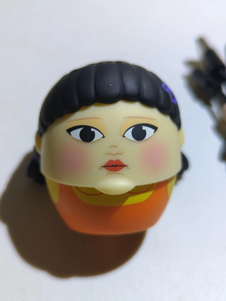 The Squid Game Bitty Boomer Bluetooth Speaker is a standing speaker designed in a multicolor scheme featuring characters from the popular show. This collectible item comes with a cable for charging. It has been tested and is confirmed to be in working condition, providing a convenient and fun way to enjoy your favorite music or audio content. The Bluetooth feature allows for wireless connectivity to various devices for easy playback.