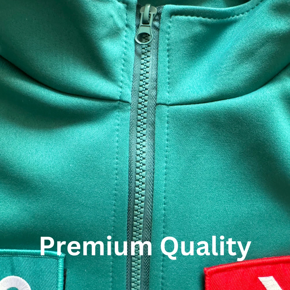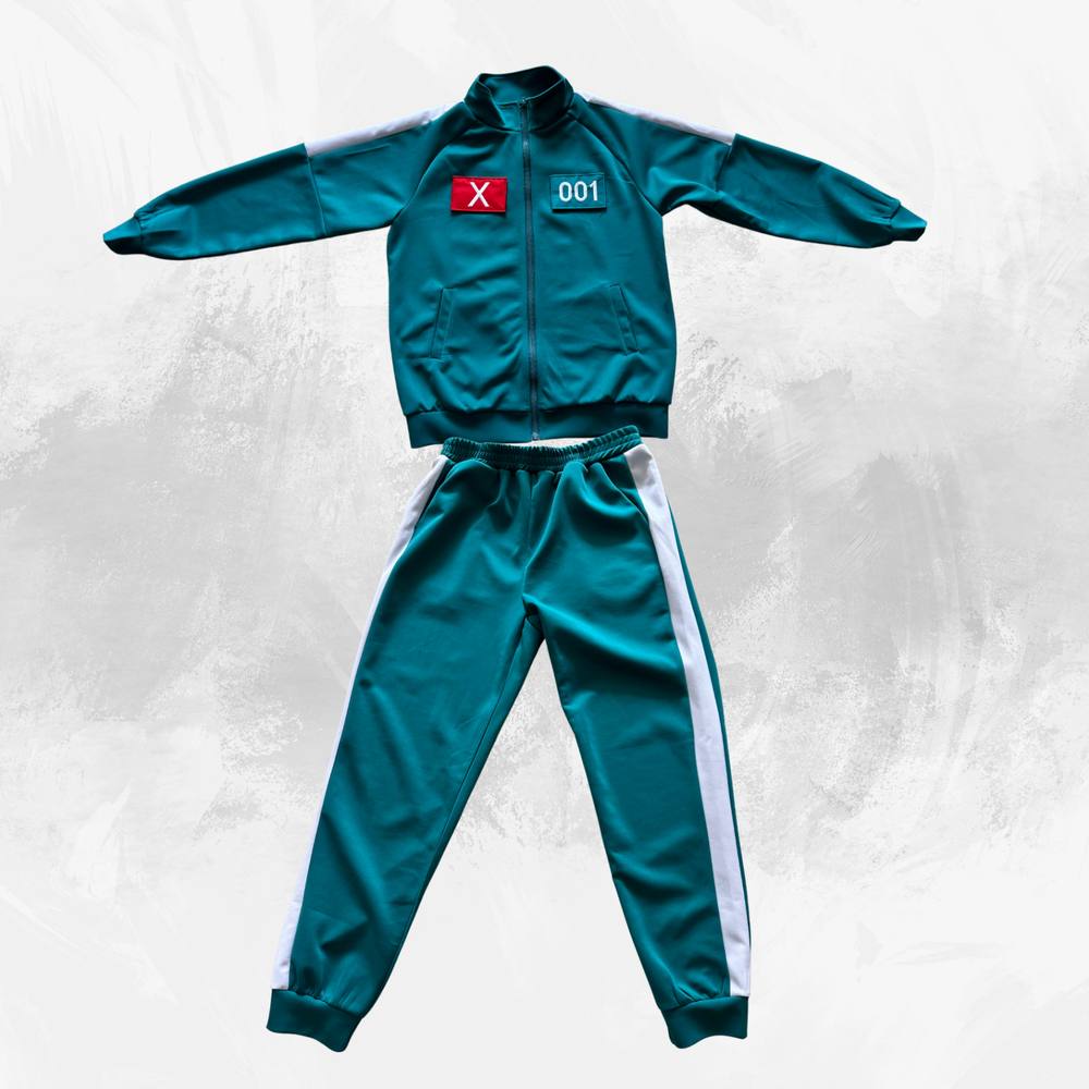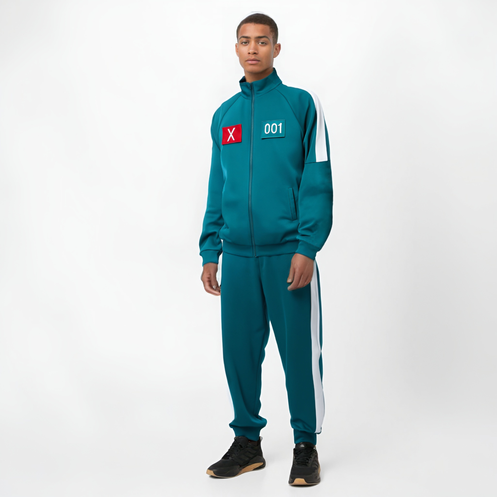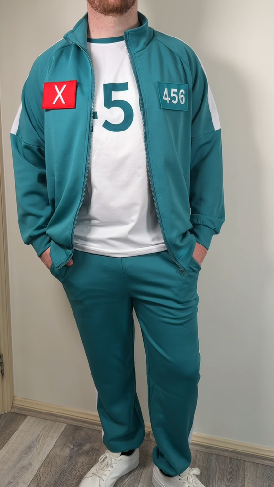 This green tracksuit is the ultimate cosplay outfit or stylish casual wear! Featuring removable number patches with a hook-and-loop design, it offers versatility for themed events, parties, or everyday comfort. Perfect for fans of dramatic competitions and retro athletic looks, this unisex tracksuit is made with high-quality materials and attention to detail. Key Features: - Removable Patches: Personalise your outfit with hook-and-loop number patches for easy customisation. - Switch them out to play on different teams and play different characters in a second. - High-Quality Material: Made from soft, breathable fabric that ensures comfort while maintaining durability. - Unisex Fit: Designed to suit all body types with sizes available from S to 4XL. Check our size chart for the perfect fit. - Stylish and Versatile: Perfect for cosplay, themed parties, casual outings, or even as loungewear. Specifications: Material: Polyester and cotton blend for a smooth, stretchy fit. Color: Green with white accents. Includes: Tracksuit top, matching pants, and removable patches (numbers vary, 3 patches by default). Why You’ll Love It: - Customisable Look: Easily attach and remove the patches to create your unique outfit for events or keep it casual for everyday wear. - Attention to Detail: High-quality stitching and retro-inspired design make this tracksuit a standout piece. - Perfect for Events: Ideal for costume parties, group cosplay, or any event where you want to stand out with a bold yet minimalist style. Care Instructions: Machine washable on a gentle cycle; hang dry to preserve the hook-and-loop fastening. Do not iron directly on the patches. Order now to add this versatile and stylish tracksuit to your wardrobe. Whether you’re preparing for an event or looking for comfortable casual wear, this tracksuit is the perfect choice! Custom sizes and additional patches are available upon request—just send us a message.