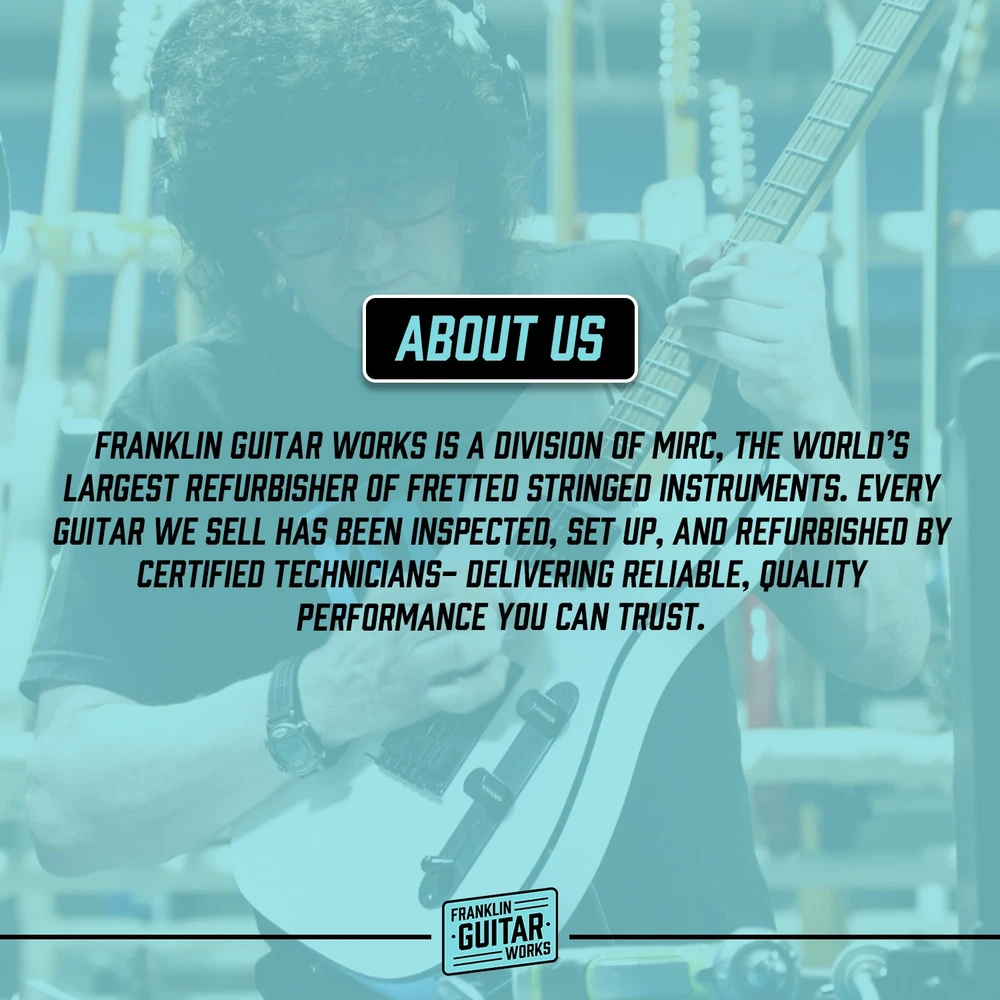 Professionally refurbished, thoroughly inspected, and ready to perform. Every Franklin Guitar Works instrument undergoes a comprehensive refurbishment process and detailed evaluation. Our skilled technicians ensure proper playability, reliable performance, and consistent quality before any guitar ships. Buy with confidence from a team backed by over 17,000 verified 5-star reviews and dedicated customer support that stands behind every instrument. Our inventory moves quickly, so act soon. Weight 10lbs 5oz Up for sale is a Squier Classic Vibe Active '70s Jazz Bass V. This one came to us in great shape! The electronics have been play tested and are working as they should. There is a small cosmetic blemish on the neck heel as as well as back of the neck. There also may be some very light surface scratching but it is in overall excellent condition. This one does not include a case or gigbag. The Classic Vibe Active '70s Jazz Bass V draws its inspiration from the infamous basses that defined the funky tones of the 1970s, adding an onboard preamp for the ultimate combination of vintage looks and modern performance. Powering this Squier 5-string groove machine is a pair of Fender Designed alnico Noiseless J Bass pickups for punchy hum-free signal. The 9-volt preamp provides controls for volume, pickup blend, treble and bass boost, and a toggle to switch between active and passive for complete tone-shaping control. Other details include a HiMass bridge for optimal resonance, a striking bound fingerboard with block inlays, rich-looking nickel-plated hardware and a slick vintage-tinted gloss neck finish for an old-school vibe. Features: Fender Designed Noiseless Jazz Bass pickups Onboard 9-volt preamp with controls for volume, tone, pickup blend, treble/bass boost Active/passive switch HiMass bridge Vintage-tinted gloss neck finish Nickel-plated hardware SKU:0374553508 Specifications: Body Finish : Gloss Polyurethane Body Material : Poplar Body Shape : Jazz Bass® Bridge Pickup : Fender Designed™ Alnico Noiseless™ Bridge : HiMass™ Color : Ocean Turquoise Configuration : SS Control Knobs : Black Plastic Controls : Master Volume, Pan, Master Tone, Treble/Bass Boost Hardware Finish : Nickel Pickguard : 3-Ply Parchment Style : 2 Single-Coil Switching : 2-Position Mini Toggle Active/Passive Switch Fingerboard Material : Maple Fingerboard Radius : 9.5" (241 mm) Fret Size : Narrow Tall Neck Finish : Tinted Gloss Urethane Neck Material : Maple Neck Plate : 4-Bolt Squier® Neck Shape : "C" Shape Neck Pickup : Fender Designed™ Alnico Noiseless™ Number Of Frets : 20 Nut Material : Bone Nut Width : 1.875" (47.6 mm) Orientation : Right-Hand Position Inlays : Pearloid Block Truss Rod : Head Adjust Tuning Machines : Vintage-Style Franklin Guitar Works - Who We Are FGW is a division of MIRC, LLC (Musical Instrument Reclamation Corporation), located in Franklin TN. MIRC is the world's largest refurbisher of stringed instruments. We partner with the leading manufacturers in the industry, helping them recondition their distressed instruments. All of our instruments have been inspected, set up, and refurbished by our certified technicians to ensure you are receiving a quality instrument. Hours of Operation Our online Business hours are Monday - Friday 7:30 am to 4:00 pm CST. Closed on weekends and holidays. Shipping Policy Free ground shipping within the continental USA. Items under $20 will have a $9.95 shipping charge. We do not offer international shipping. We cannot ship to a PO Box. Orders require a physical mailing address to be processed. All orders over $500 will be shipped with a direct Signature Requirement to ensure it is received. If the signature requirement is refused, the customer will assume responsibility for the package once it reaches the delivery address. Orders are processed Monday through Friday, 7:30am - 4:00pm CST. Shipments are prepared in the order that they are received. We make every effort to expedite orders as quickly as possible, but we cannot guarantee ship dates. Please allow up to 3 business days for tracking information. Thank you for your business!