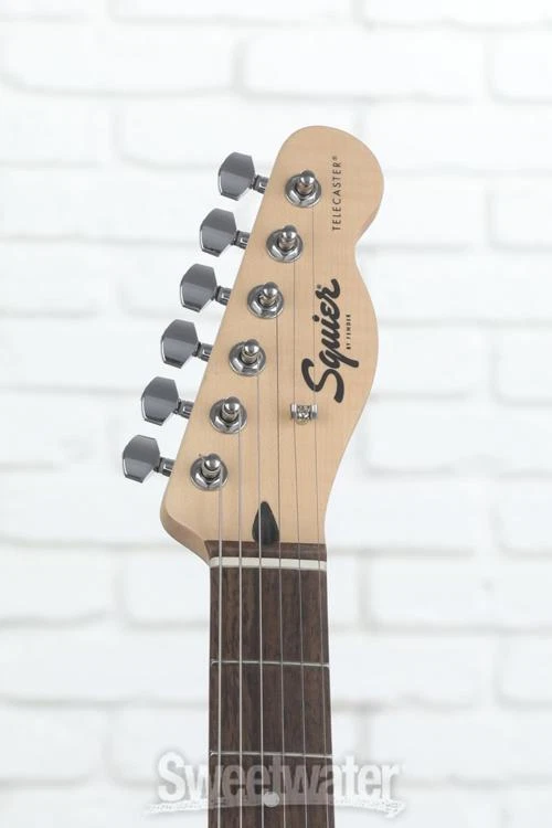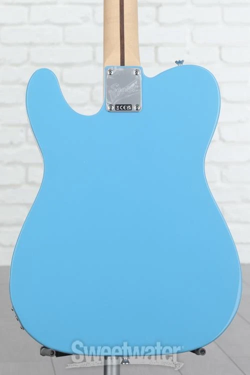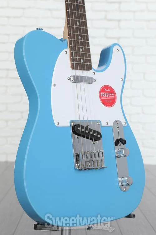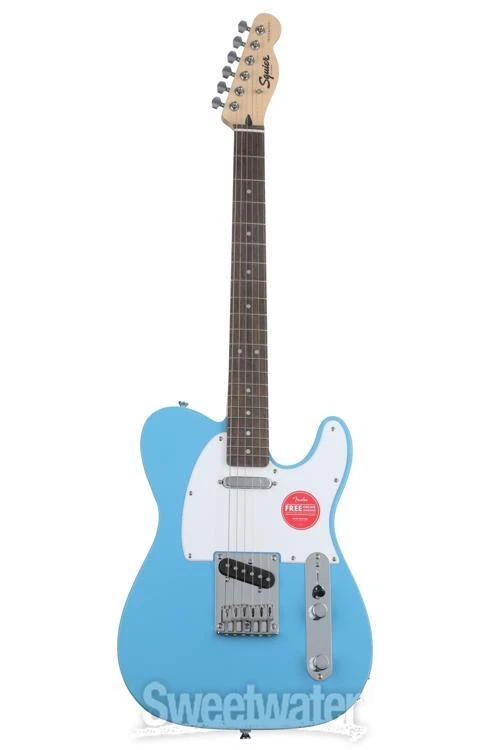 A Superb Introduction to the Electric Guitar The Squier Sonic Telecaster arms beginners with a solid instrument that retains the sound and style of the world’s first solidbody electric guitar. Ceramic Tele Single-Coil pickups at the neck and bridge unleash vintage Tele twang, while a 3-way pickup selector and master tone/volume controls introduce an impressive tonal palette that’s ready to sculpt the mood of any song or lesson. A poplar body keeps things lightweight, while the traditional “C”-shaped neck affords all players a comfortably classic grip for practicing and performing. The die-cast tuners, Telecaster Bridge, and control knobs all come finished in chrome for that legendary Telecaster visual shimmer, too. Plus, an assortment of iconic finishes gives every 6-string pupil a proper Tele aesthetic. If you’re looking for an exciting first electric guitar, there’s no better springboard than the Squier Sonic Telecaster.Designed for comfort Whether you’re shopping for a youngster Sweetwater is an Authorized Squier Dealer Genuine New Item Sweetwater's 2-year warranty Squier Sonic Telecaster Electric Guitar - California Blue Solidbody Electric Guitar with Poplar Body, Maple Neck, Laurel Fingerboard, and 2 Single-coil Pickups - California Blue A Superb Introduction to the Electric Guitar The Squier Sonic Telecaster arms beginners with a solid instrument that retains the sound and style of the world’s first solidbody electric guitar. Ceramic Tele Single-Coil pickups at the neck and bridge unleash vintage Tele twang, while a 3-way pickup selector and master tone/volume controls introduce an impressive tonal palette that’s ready to sculpt the mood of any song or lesson. A poplar body keeps things lightweight, while the traditional “C”-shaped neck affords all players a comfortably classic grip for practicing and performing. The die-cast tuners, Telecaster Bridge, and control knobs all come finished in chrome for that legendary Telecaster visual shimmer, too. Plus, an assortment of iconic finishes gives every 6-string pupil a proper Tele aesthetic. If you’re looking for an exciting first electric guitar, there’s no better springboard than the Squier Sonic Telecaster. Designed for comfort Whether you’re shopping for a youngster or just trying to learn the tricks of the 6-string trade, the Sonic Telecaster offers a feel free of intimidation and discomfort. Starting with its lightweight poplar body, you’ll hardly notice the weight resting on your knee during seated sessions, while the bearing on your neck when standing is designed to be minimal. The maple neck’s “C”-shaped profile provides comfortable chording and the necessary forgiving nature to combat discouragement while learning the ropes. Paired with its Tele-standard 25.5-inch scale length, the Sonic Telecaster is about as perfect a representation of “trainable meets traditional” as you’ll find — even the factory .009-gauge strings are quick to get used to! Patented single-coil sparkle Why do guitar fanatics love the Tele? One big reason is its iconic sharp, sparkly single-coil sound. Equipped with a pair of Ceramic Tele Single-Coil pickups in the original Telecaster configuration, the Sonic Telecaster delivers in spades. From country to rock, alternative, and beyond, nothing beats the sculptability of single-coil tones, making for the perfect benchmark for blossoming beginners. (Sweetwater tip: the Sonic Telecaster can also produce a credible jazz tone — just roll-off the tone knob to taste.) Guitar legends like Jimmy Page, Bruce Springsteen, and Keith Richards have all favored that timeless Tele twang, and needless to say, it’s no mere coincidence! Looking the part Phenomenal feel? Check. Superb sound? Check. Stunning visuals? You bet! The Sonic Telecaster comes dressed in a variety of classic finishes, arming beginners with a legendary-looking instrument. Additional visual charm comes in the form of chrome hardware across the control knobs and plate, sealed die-cast tuning machines, and a 6-saddle Telecaster Bridge. Make no mistake, the Squier Sonic Telecaster has the sonic and visual makings for a spectacular springboard instrument — all for a price that’s virtually unbeatable! Squier Sonic Telecaster Electric Guitar Features: Poplar body offers a lightweight feel for all players, whether sitting down or standing up Maple neck features a classic “C”-shaped profile for comfortable chording Standard 25.5-inch scale length delivers a traditional stretch across the fretboard Factory .009-.042-gauge strings are forgiving on the fingers Neck and bridge Ceramic Tele Single-Coil pickups supply that legendarily bright and sparkly tone Assortment of classic finishes nail the iconic aesthetic of the Tele Chrome-finished hardware, including knobs, die-cast tuners, and 6-saddle Telecaster Bridge Single-cut body offers timeless good looks and easy access to all frets Specification Detail Number of Strings 6 Left-/Right-handed Right-handed Body Type Solidbody Body Shape Telecaster Body Material Poplar Color California Blue Body Finish Gloss Polyester Neck Material Maple Neck Shape C Neck Joint Bolt-on Radius 9.5" Fingerboard Material Laurel Fingerboard Inlay Dots Number of Frets 21 Scale Length 25.5" Nut Width 1.650" Nut Material Synthetic Bone Bridge/Tailpiece 6-saddle Hardtail Tuners Sealed, Die-cast Neck Pickup Squier Ceramic Tele Single-coil Bridge Pickup Squier Ceramic Tele Single-coil Controls 1 x volume, 1 x tone Switching 3-way blade pickup switch Strings NPS, .009-.042 Case/Gig Bag Sold Separately RETURN INFORMATION We want you to be completely happy with your purchase from Sweetwater. If you are not satisfied with your product, you may return it for a refund of the purchase price within 30 days. If your purchase was eligible for Free Shipping, the shipping cost will be deducted from your credit or refund. Returns must be in the complete and original packaging with all accessories and c