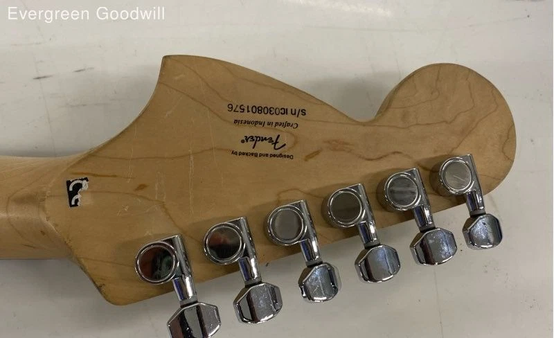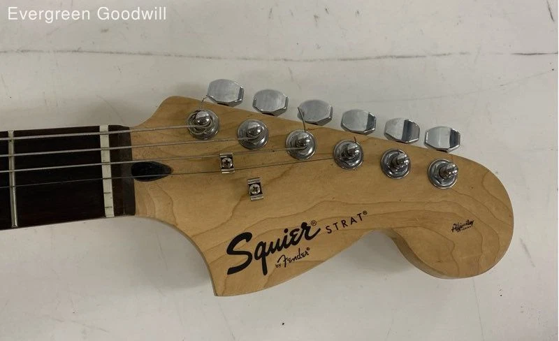 squier Electric Guitar Brand : squier Type & Body Style : Electric strat Condition: Fair - shows signs of wear Case: Soft Case - Gig Bag Total Length: 39 in Body Length: 19 in Weight: 8 lbs No cracks or splits. May have chips and other cosmetic damage. See photo for action. Tuners work. Setup and new strings recommended. Electronics untested. May require maintenance. Scale 25.5" Evergreen Goodwill helps people get jobs across Northwest Washington by offering high-quality free job training, education and job placement. We empower individuals to overcome barriers to working by providing comprehensive support and connecting them with life-changing job opportunities, ensuring they are career-ready and can support themselves and their families. ***Disclaimer*** All items were donated to Evergreen Goodwill of Northwest Washington with no history or provenance. The auction is for all items pictured. Items may need servicing and/or benefit from a cleaning upon arrival. Please see photos for additional details and feel free to ask questions. PAYMENTS Please note that your entire order will be canceled by eBay if the oldest item exceeds 7 days without payment. Once an order is canceled, we are unable to re-invoice and the item will be relisted. For a combined shipping invoice, please send us one request within 5 days of winning the first item to avoid cancelation of your entire order. Once a combined invoice has been sent, we are unable to add additional items to the invoice. SHIPPING Local pickup only available to items listed as Local Pickup at this time. Interntaional shipping is not available at this time. We offer combined shipping as long as items will ship safely together. Auctions must end within 5 days of each other to be eligible for combined shipping. Please hold off on payment until all auctions have ended then proceed to checkout. Please do not pay for any items individually if you wish to have them combined - they must be paid at the same time. Items listed for flat-rate shipping are not eligible for combined shipping. PO Box addresses will require USPS shipments as FedEx Ground will not deliver. If FedEx is selected we may need to invoice for additional shipping costs.