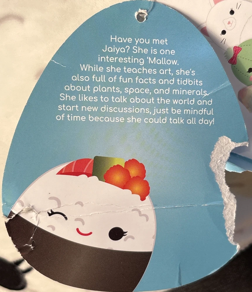 Squishmallow 16-Inch Sushi Add Jaiya to Your Squad Ultrasoft Stuffed Animal NWT Tag shows some damage. See photos. To upcycle, I reuse shipping material as often as possible. Buy more from my store and save on shipping.