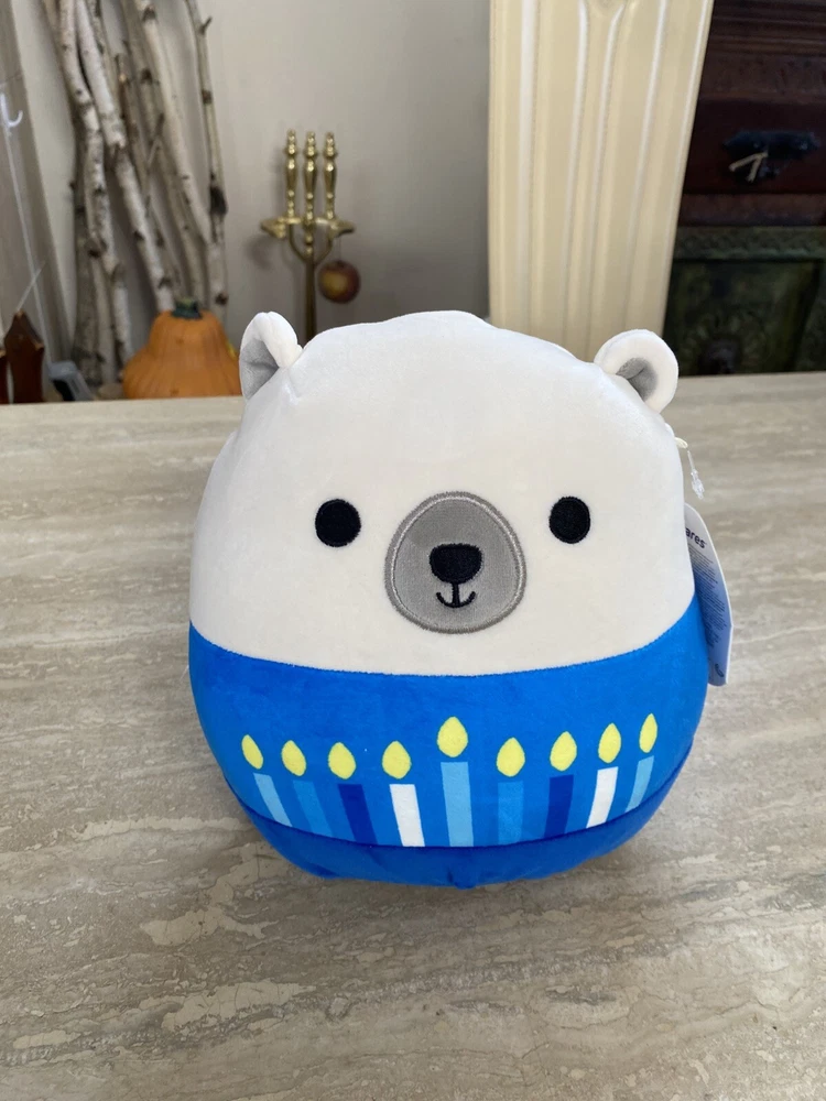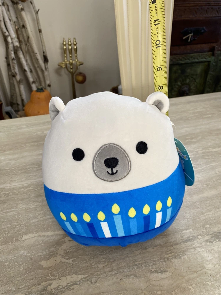 The "Squishmallow 8 inch Brooke the Polar Bear Hanukkah Plush" is a small, white plush toy from the Squishmallows brand. It features a retired design and is washable, making it suitable for users of all ages. Specifically themed for Hanukkah, this adorable polar bear is a great addition to any Squishmallows collection or holiday display. With its soft and squishy texture, this plush toy is sure to bring joy to children and adults alike, making it a versatile and charming gift option for any occasion.