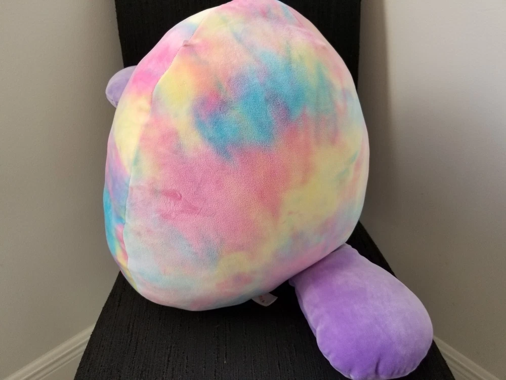 This adorable stuffed animal is the perfect addition to any collection! With its colorful rainbow tie-dye design, this medium-sized 16-inch plush Kellytoy is sure to bring a smile to anyone's face. It features a cute platypus animal design that is both soft and cuddly, making it an ideal gift for kids and adults alike. With its vibrant colors and unique design, it is sure to stand out and provide hours of enjoyment. Whether you're looking for a new addition to your collection or a gift for someone special, this stuffed animal is perfect. Very good preowned condition with no tears or stains. Please view photos.
