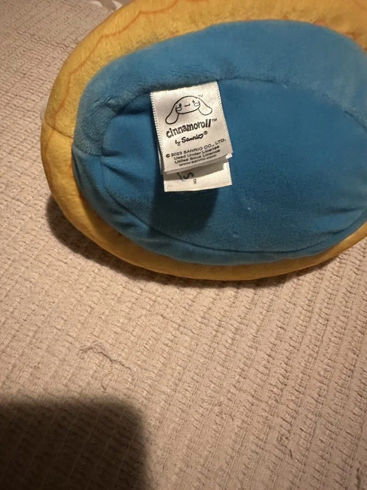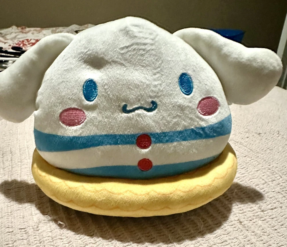 The product is a 8-inch plush toy from the brand Kellytoy, featuring the character Cinnamoroll. It belongs to the Stuffed Animals category and is part of the Squishmallow collection.