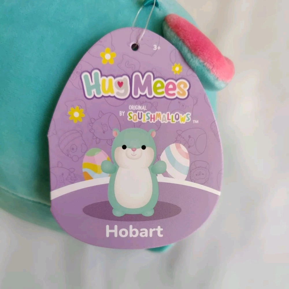 This adorable Squishmallow HugMees plush toy is perfect for Easter! Meet Hobart, the lovable Easter Hamster, and give him a big hug. He's made of soft, plush material and is perfect for snuggling with. Plus, he's washable, making him easy to clean and keep clean. Hobart is 12 inches tall and comes in a teal color. He's recommended for children ages 3 and up, and is part of the Kellytoy character family. Made in China, this toy is perfect for Easter and any other occasion. Bring home Hobart today and give him a big hug!