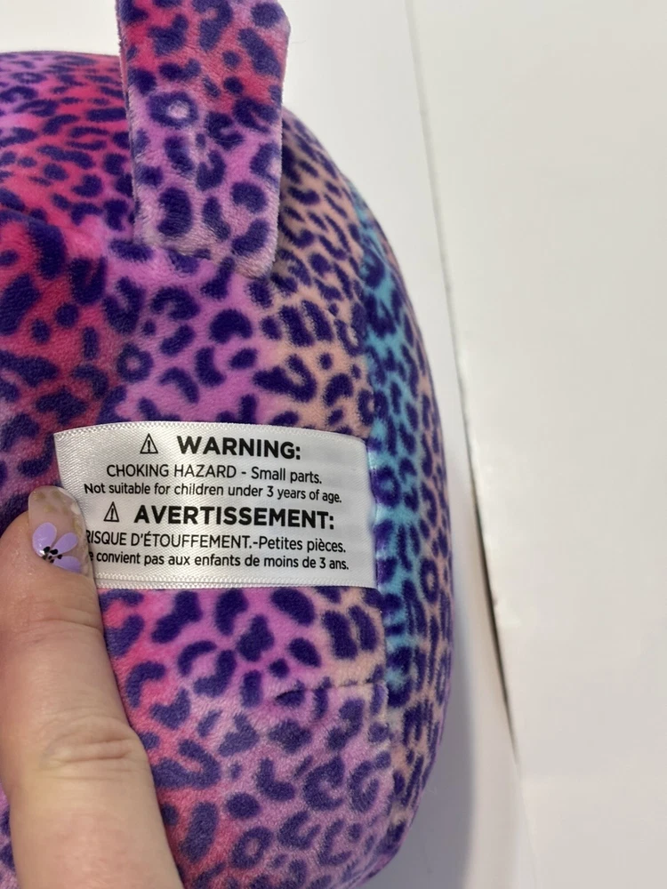 The product is a Squishmallow plush toy named Kat the Leopard, measuring 8 inches. It features a sequined belly and is designed in a multicolor pattern. Ideal for ages 3-4, this small stuffed animal is a cute and cuddly addition to any toy collection, perfect for all occasions. In excellent preloved condition, there are no flaws of any kind. Please see all attached photos.
