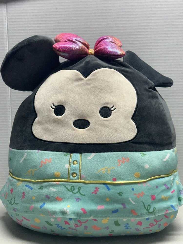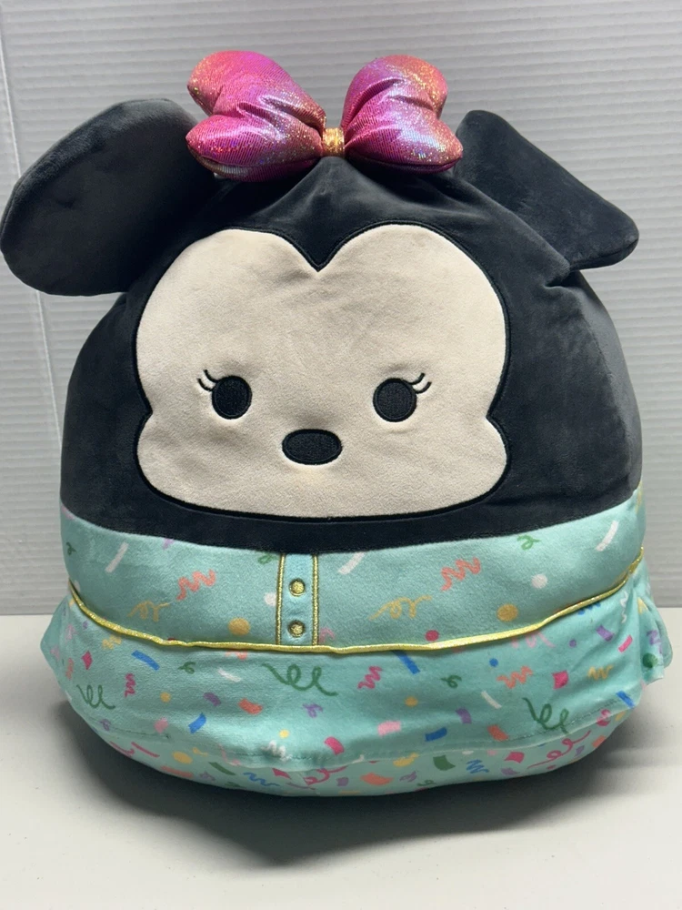 This is a 14" Squishmallow Minnie Mouse Holiday plush toy from Disney. It is a limited edition rare item by KellyToy, featuring the beloved character Minnie Mouse from Mickey Mouse & Friends. The plush toy is multicolored, made in China, and falls under the Stuffed Animals category in Toys & Hobbies. Clean smoke free Clear bg ebay tape