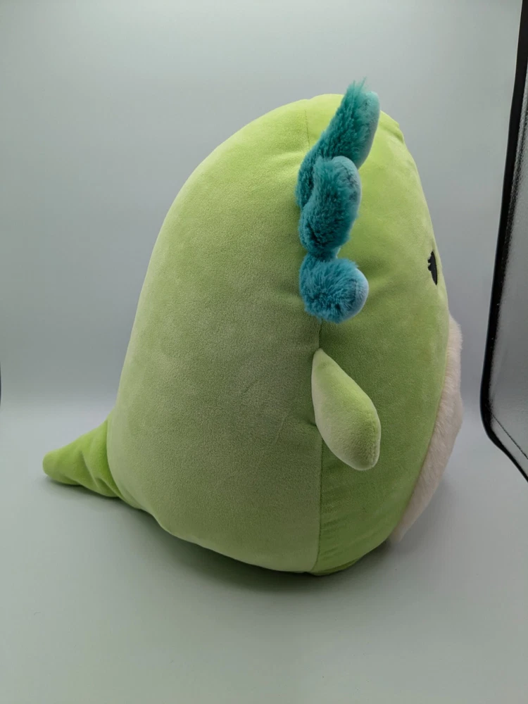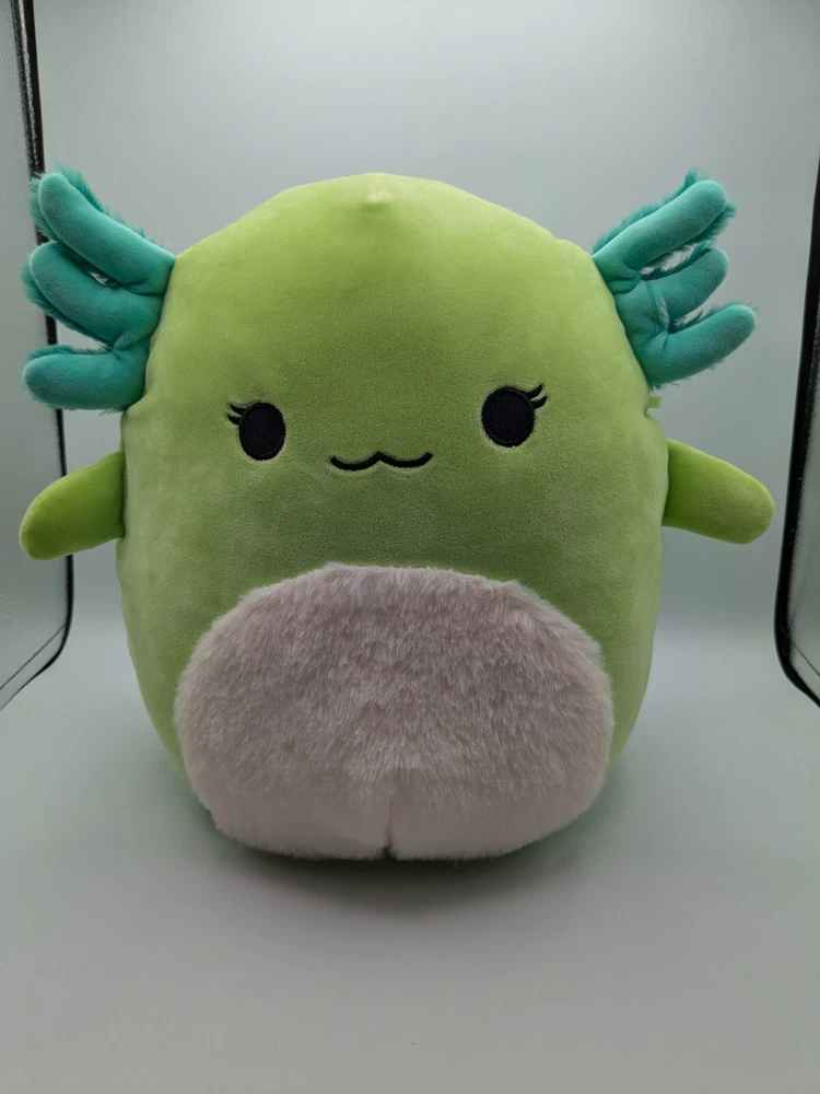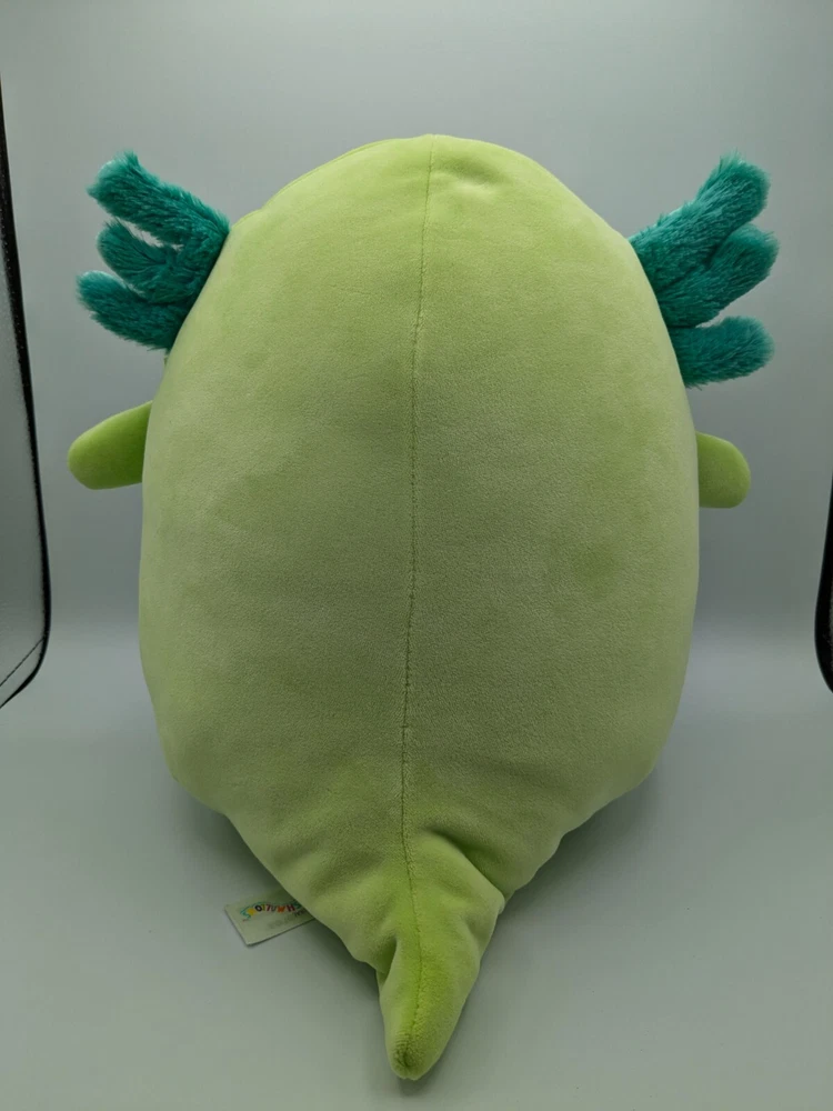 Meet Mipsy, the 12-inch Squishmallows green axolotl with a soft, fuzzy white belly! Her apple-green body is accented with mint gills, light teal frills, and stubby arms, while her round black eyes with eyelashes and charming cat-like smile bring her personality to life. A perfect cuddly companion or a delightful addition to your Squishmallows collection. Pre-owned in good condition, small mark as shown in images. We ship within one business day! This item comes from a smoke-free and dog-free home. Our items are carefully packed to guarantee their safe arrival to you. #squishmallow #squishmallows #mipsy #axoloti #plush #plushie #plushies #cbtreasures