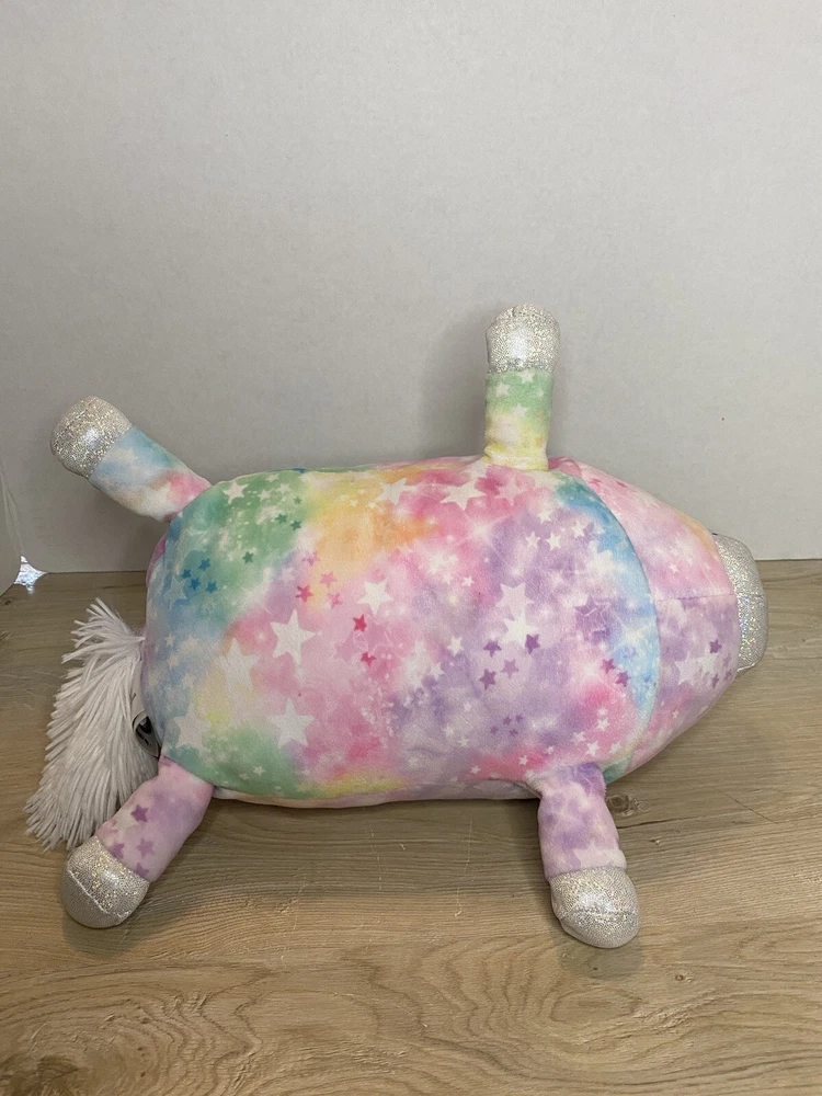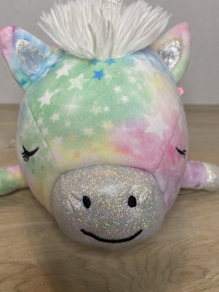 Squishmallows Justice 12" Sleeping Piggy Unicorn Starry Tie Dye Plush. Justice Exclusive Squad Discontinued Series. Was cotton candy scented but very light now. In good condition.