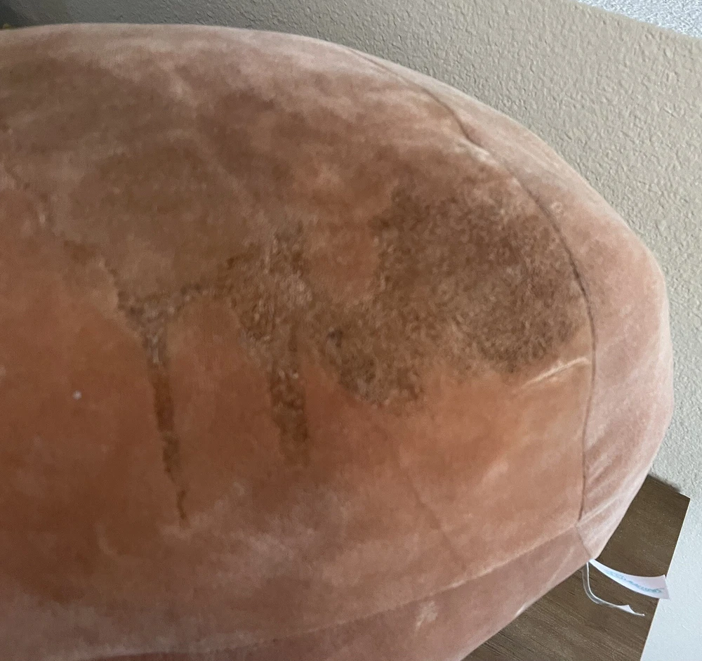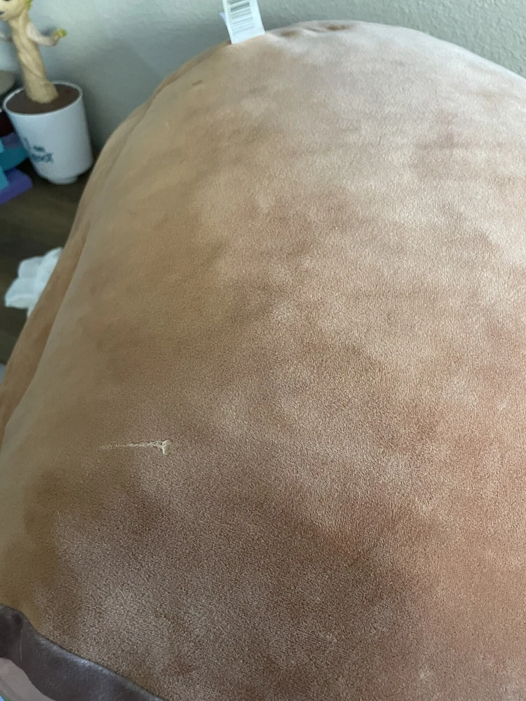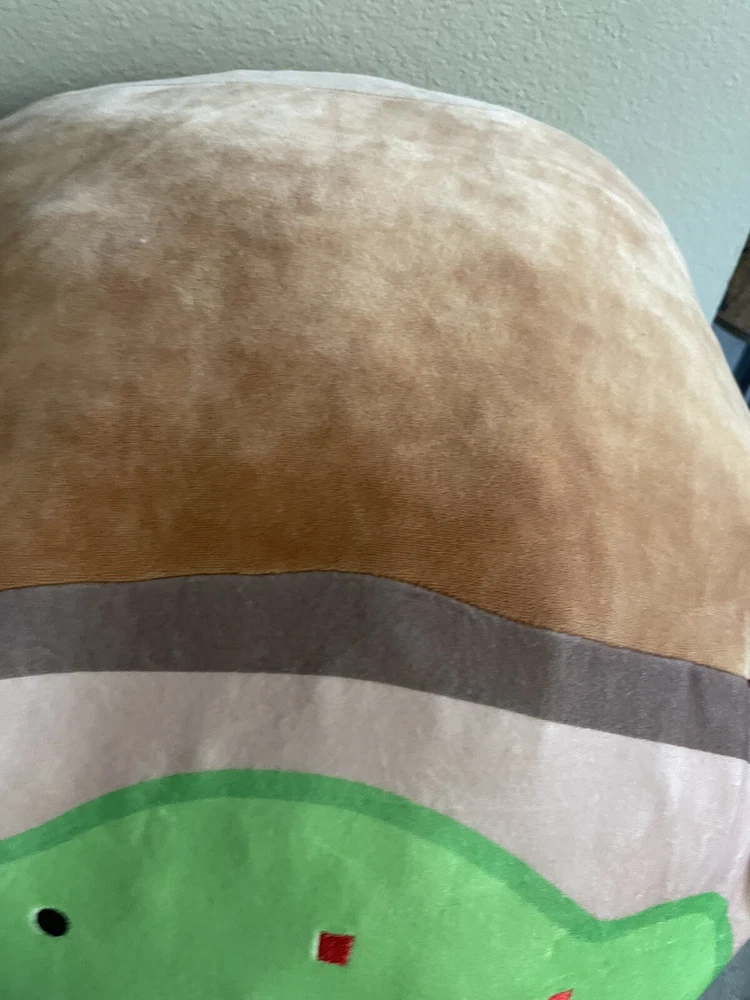 Please see pictures for marks on Squishmallow. I have not had time to wash but have gotten similar marks off. There are a couple small ones pictured that are barely visible. Larger one on back to.