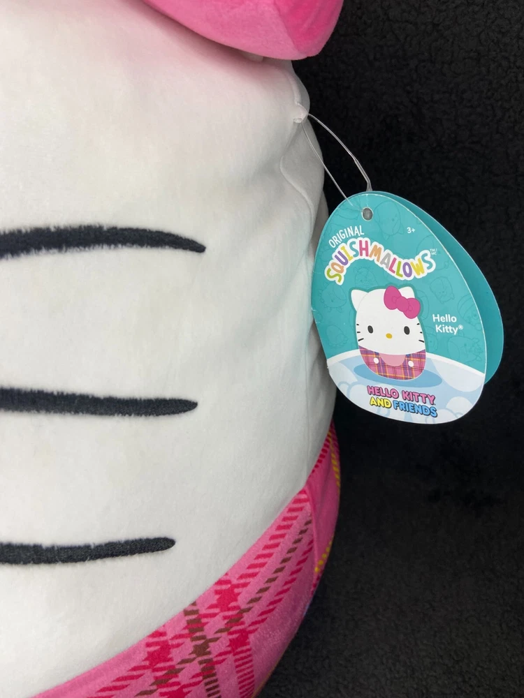 Squishmallows 20" Hello Kitty Original JUMBO Plush - Pink Plaid- RARE NWT Brand new squishmallow with tags in good condition, does have a small stain in the back which is shown in pictures. No tears. Feel free to ask any questions about this item, all of our items come from a smoke free environment.