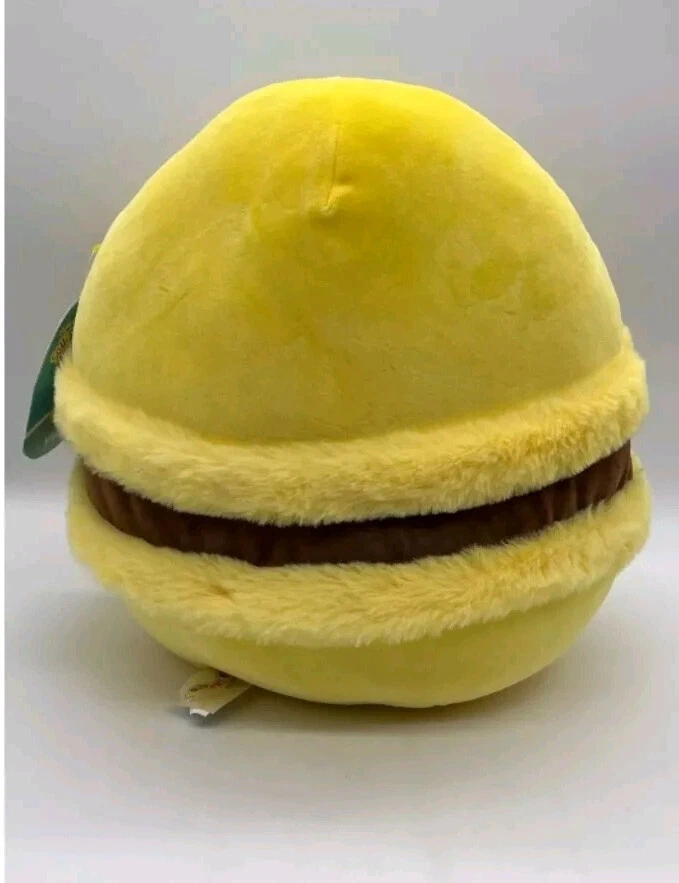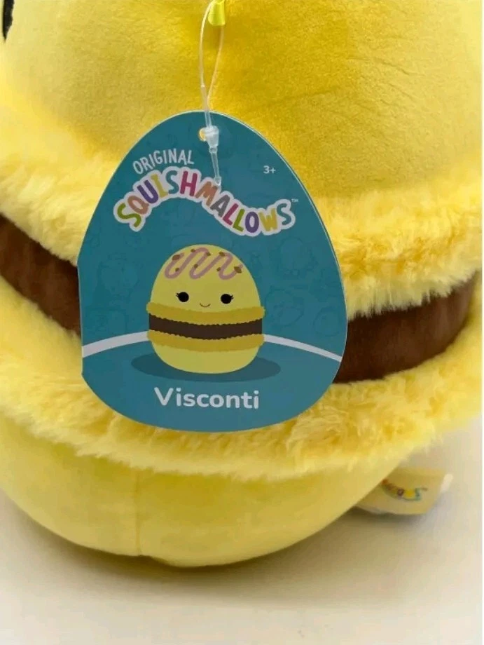 The Squishmallows Official Jazwares 5Inch Visconti Yellow Lemon and Chocolate Cream is a small stuffed animal featuring a yellow color scheme. This cute toy belongs to the Squishmallows brand and has a unique design inspired by a lemon and chocolate cream theme. It is a charming addition to any collection of stuffed animals.
