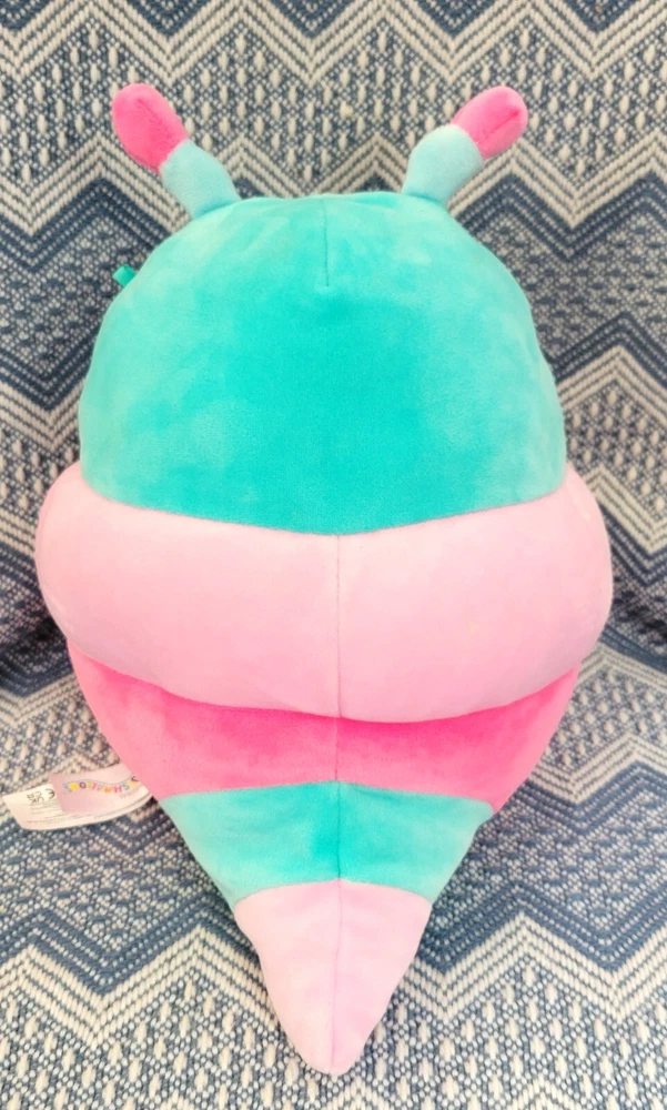 Squishmallow 8 inch Fluxie Caterpillar Teal Pink Heart Belly Valentine Plush used in good condition from a smoke and pet free home
