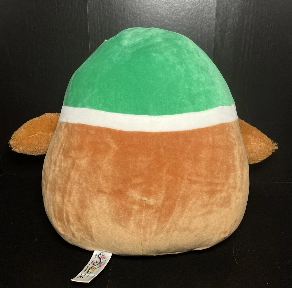 The product is a 12-inch Squishmallows plush toy named Avery, designed as a green mallard duck. It is a small-sized stuffed animal suitable for Easter or general play.