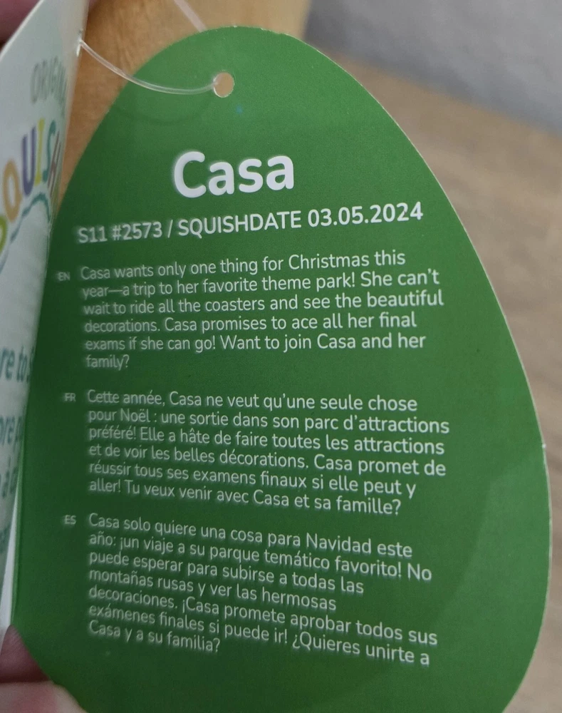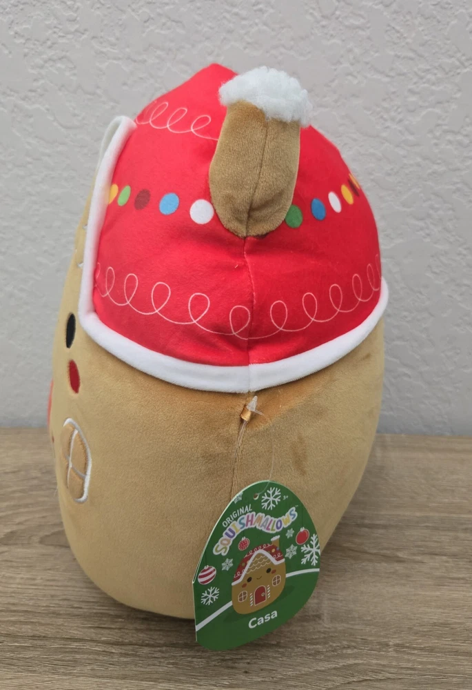 *Free shipping with USPS Ground Advantage. Ships ASAP. Packaged with care. Smoke-free home.* This is an 11" Squishmallows plush toy named CASA, designed as a gingerbread house for Christmas. It is a collectible item with a holiday theme, featuring a brown color and is brand new with tags (NWT). Recommended for ages 3 and up, this plush toy is part of the Squishmallows character family, made in China.