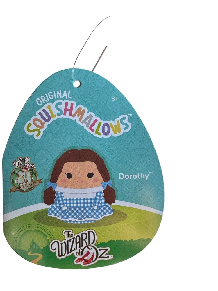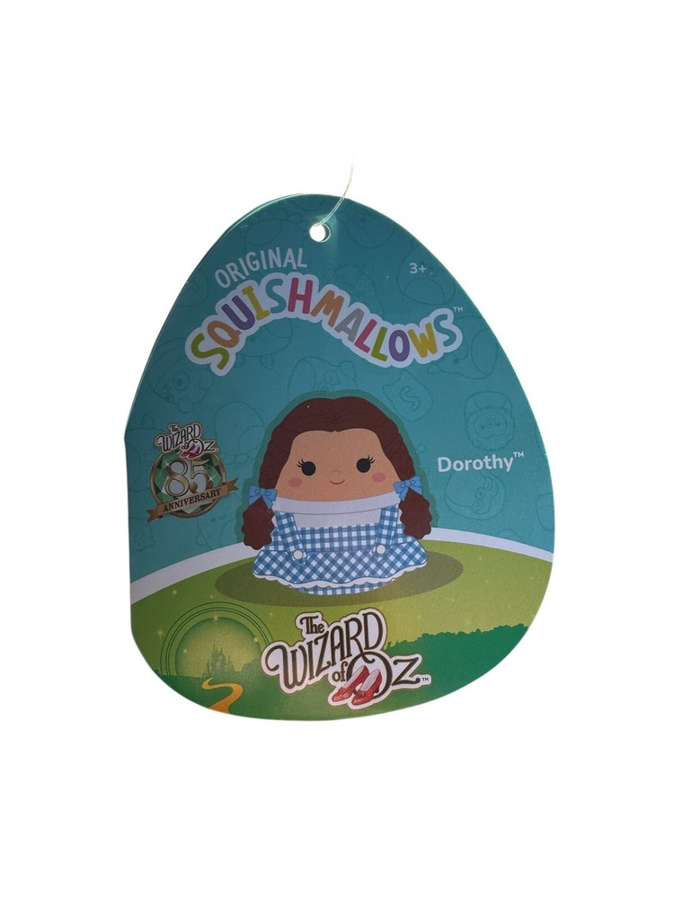 This is a 6.5" Squishmallows plush toy of Dorothy from the Wizard of Oz, celebrating the 85th Anniversary. It is a collectible item that is brand new with tags (NWT). The colorful plush is part of the Wizard of Oz character family and is recommended for ages 3 and up. Made in China, this small-sized plush is a special edition for fans of the classic movie.