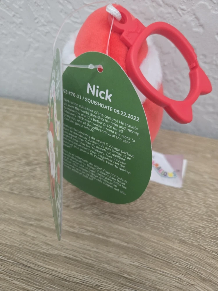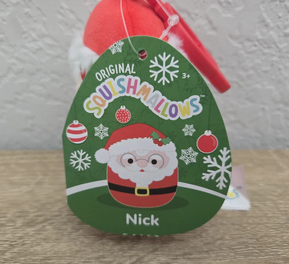 *Free shipping with USPS Ground Advantage. Ships ASAP. Packaged with care. Smoke-free home. Item is brand-new with tags.* This is a Squishmallows NICK The Santa Claus plush keychain bag clip, measuring 3.5 inches. It is red in color and features a collectible design. The plush is new with tags and suitable for hand-washing. Recommended for ages 3 and up, this mini Squishmallow is part of the holiday-themed Character Family collection. Made in Vietnam.