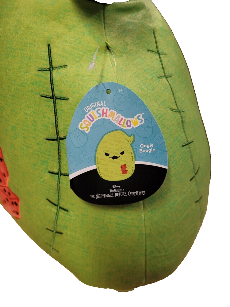 Get ready to add a limited edition Squishmallow to your collection with this 14" Oogie Boogie from The Nightmare Before Christmas. This large plushy is perfect for Halloween and is recommended for ages 3 and up. The green color and medium size make it a great addition to any stuffed animal collection. With its unique design and character family, this Squishmallow is sure to be a hit with fans of The Nightmare Before Christmas. Don't miss out on the chance to add this rare item to your collection. Order now and experience the plushy goodness of this beloved character. Buy with confidence. 100% feedback score. Fast shipping