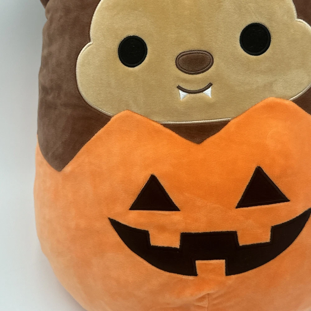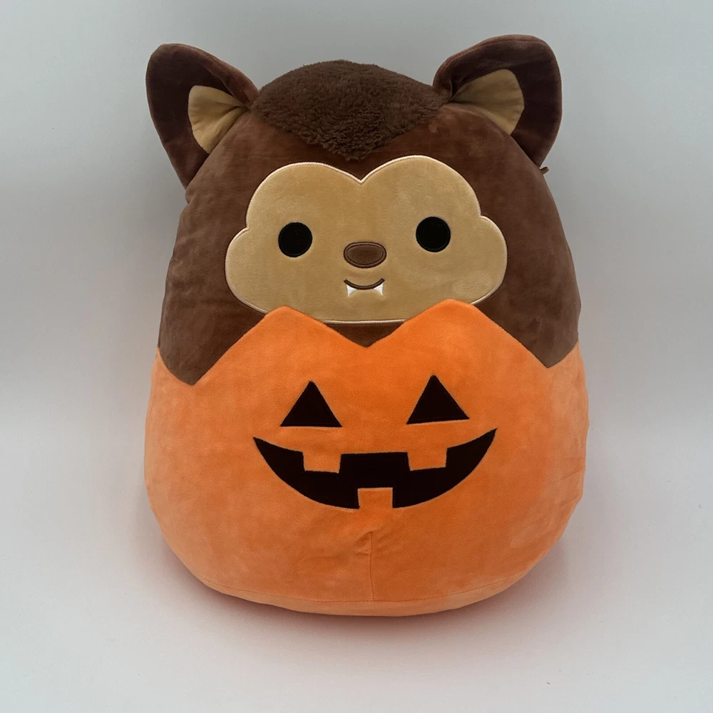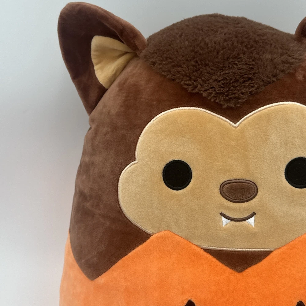 Embark on a playful adventure with the Squishmallows Official 2021 Halloween Wade the Werewolf Pumpkin Plush Toy. This medium-sized, multicolored cuddle buddy, measuring between 14 to 24 inches, is perfect for snuggling and adds a touch of spooky fun to any collection. Designed with a wolf motif, it's an ideal companion for both Halloween festivities and year-round imaginative play. Crafted for comfort and durability, this plush toy is part of the beloved Squishmallows family. It brings a unique blend of coziness and whimsy to your home or office. Whether you're looking to gift a charming creature for a budding werewolf enthusiast or seeking a festive decoration, Wade the Werewolf is an exceptional choice that promises to delight.