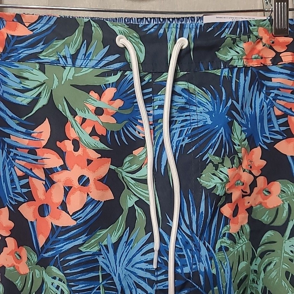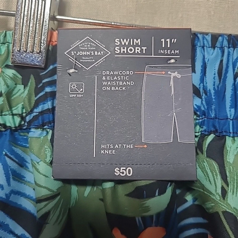 St. John's Bay Men Shorts Swim Trunks Floral Drawstring Elastic Waist 4XLT NWT MSRP $50 Shell: 100% Polyester Lining: 100% Polyester Waist: 50 Inches Rise: 14.5 Inches Inseam: 11 Inches