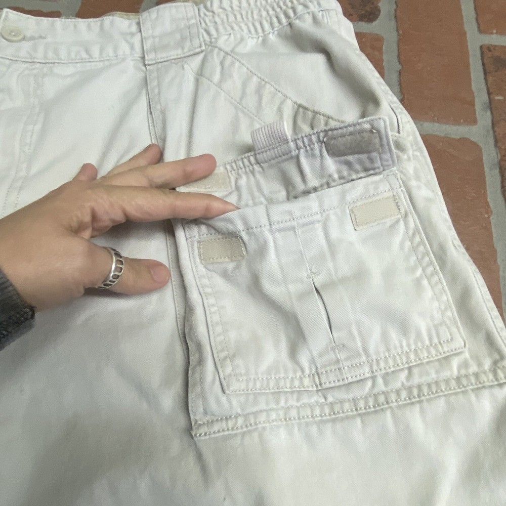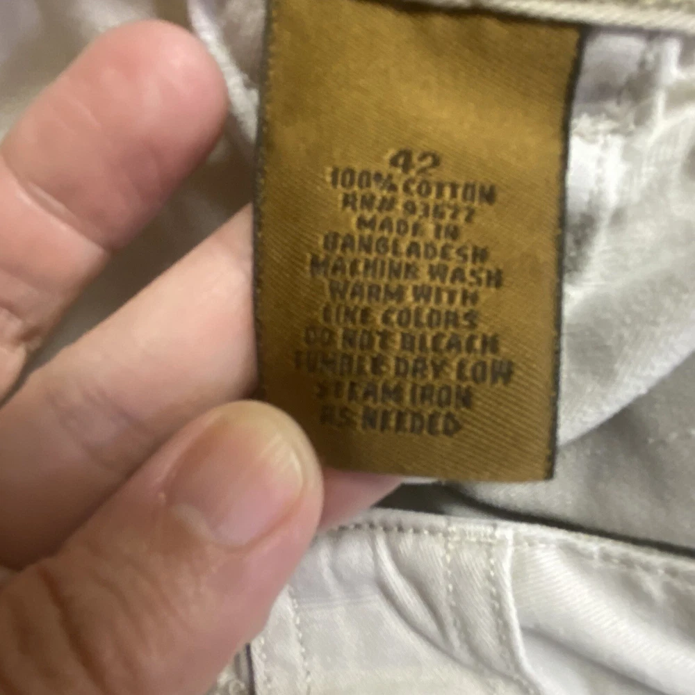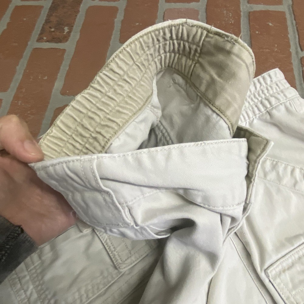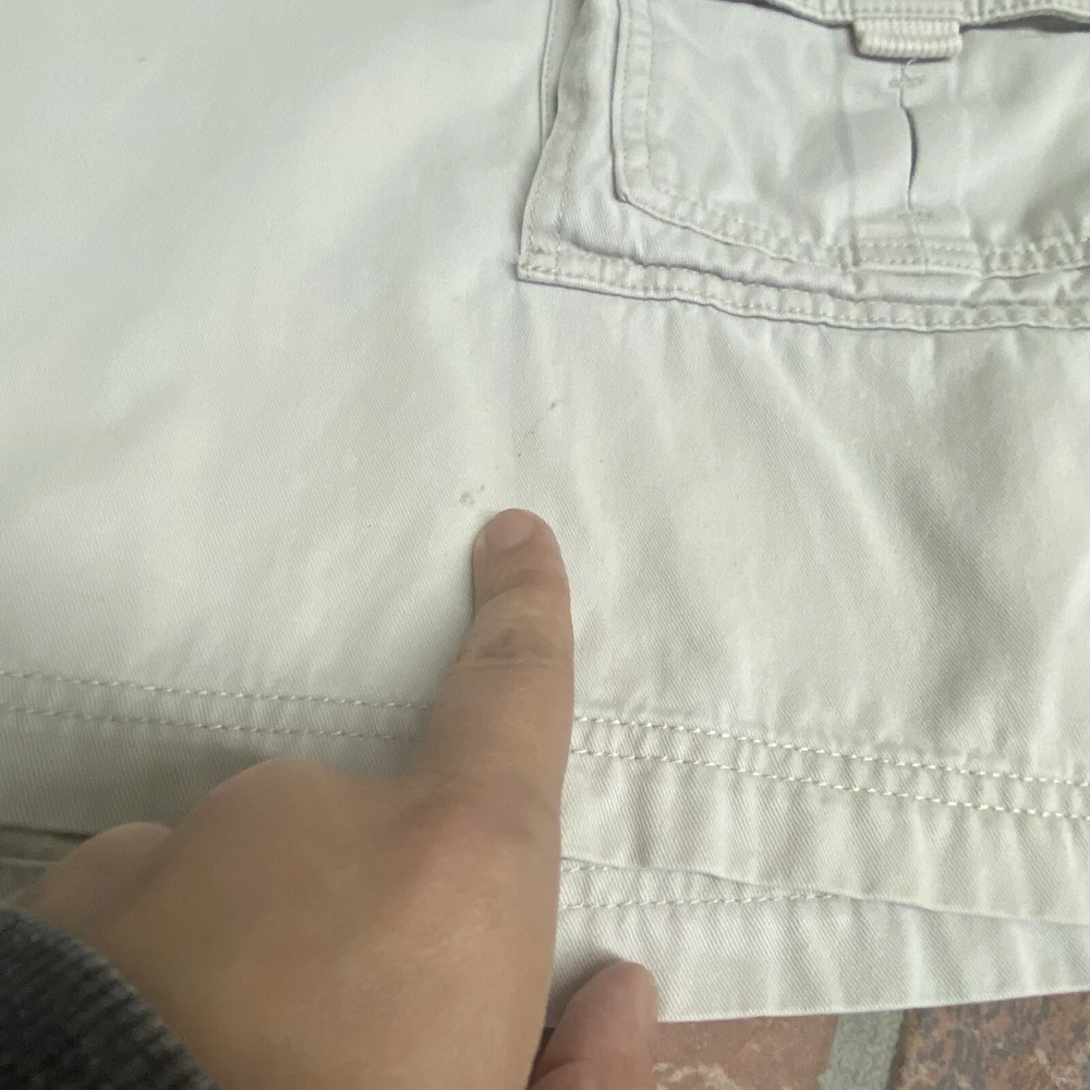 Preowned very good condition, there is a slight “smudge” on the front of the shorts, but not very noticeable at all; see the last picture. Smoke free environment. 100% cotton. Approximate measurements: 42 inch waist/12.5 inch rise/6.5 inch inseam Let me know if you have any questions ! FO2