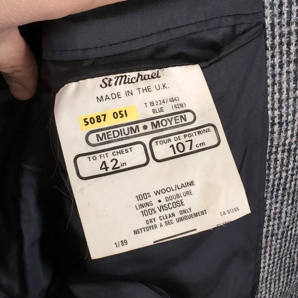 Pattern: No Pattern Jacket Cut: Single-Breasted Jacket Front Button Style: Two-Button Garment Care: Dry Clean Only Vintage: Yes Brand: St Michael Jacket/Coat Length: Regular Front Type: Flat Front Material: Wool Leg Style: N/A Lining Material: Viscose/Rayon Occasion: Business, Formal, Party/Cocktail, Wedding Number of Pieces: 1 gtin13: Does not apply Theme: Vintage Size Type: Regular Inside Leg: N/A Seller Notes: “Very good preloved condition | Size 42" Chest Medium | Length 30"” Fit: Regular Size: 42 Fabric Type: Tweed EAN: Does not apply Type: Blazer Department: Men Season: Autumn, Spring, Summer, Winter Jacket Sleeve Button Style: Two-Button Personalise: No Country/Region of Manufacture: United Kingdom Handmade: Yes Colour: Grey Features: Lined MPN: N/A Chest Size: 42 Jacket Vent Style: Double-Vented Jacket Lapel Style: N/A Style: Blazer Waist Size: N/A