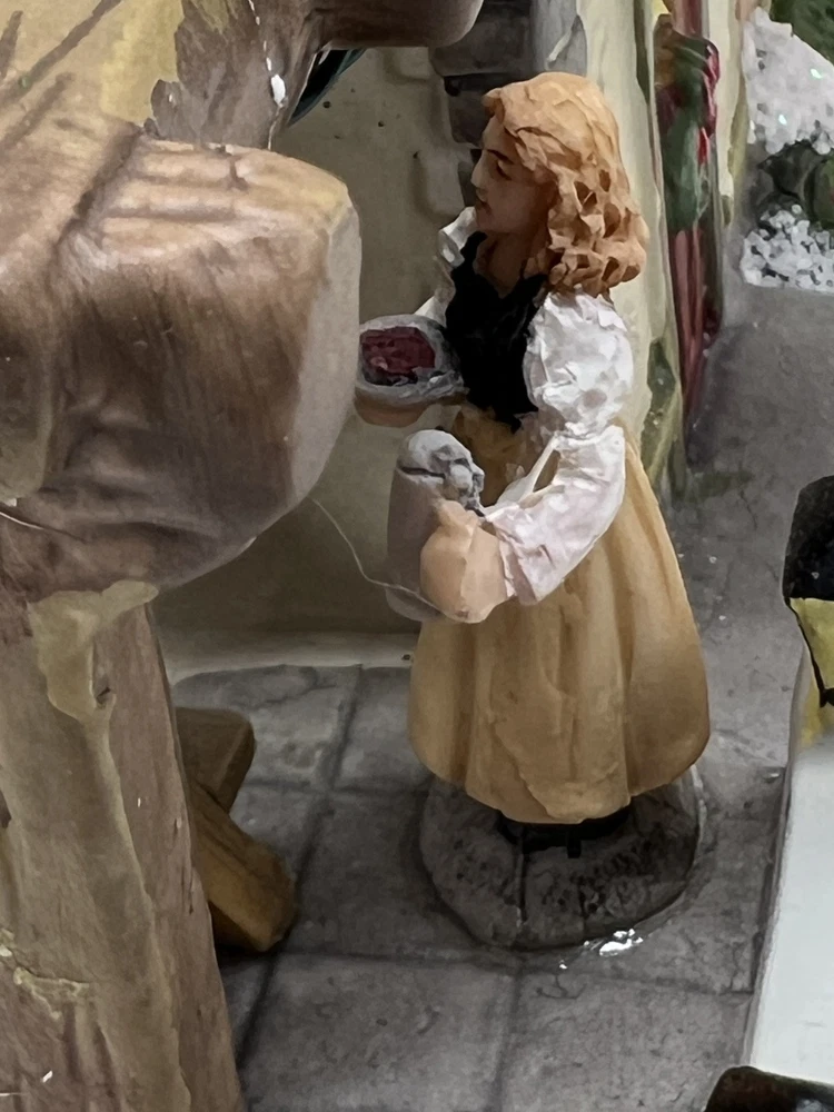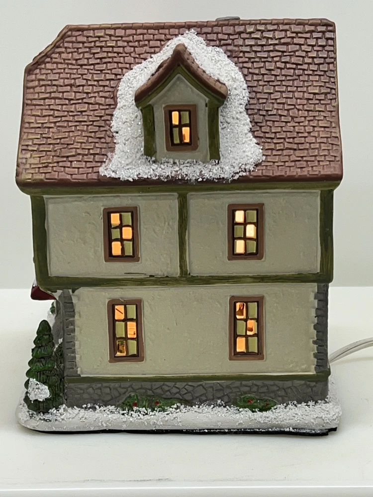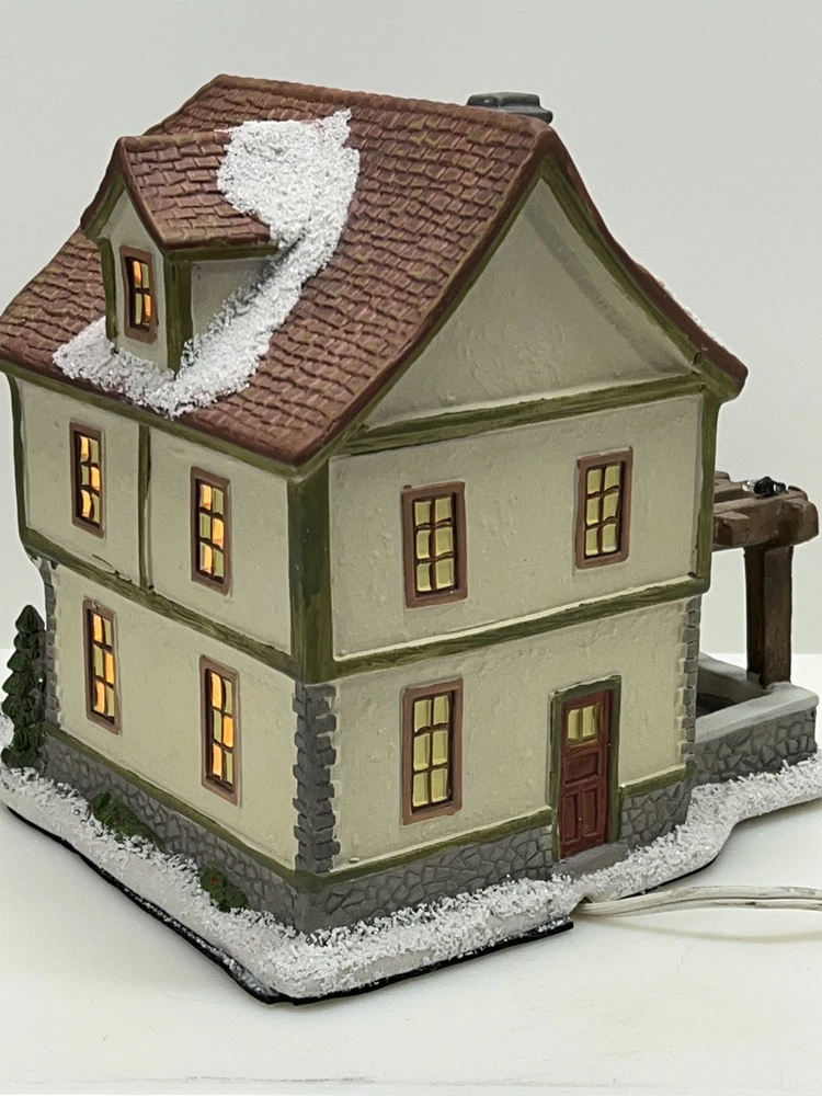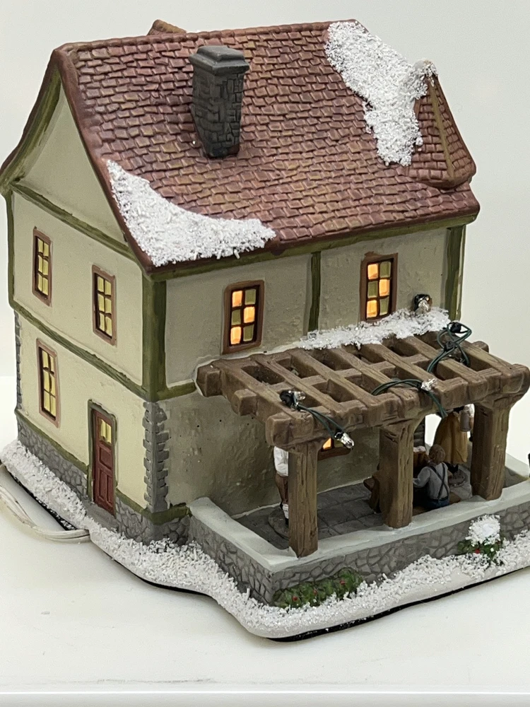 This St. Nicholas Square "Biergarten" Limited Edition Village Collection item from 2018 is a medium-sized ceramic beer garden house, hand-painted in a whimsical Mediterranean style. It features illuminated 3D effects and comes boxed. Ideal for a seasonal village display, this retired piece is perfect for Christmas and any room decor. It includes an adapter and is part of the St. Nicholas Square Village Collection, adding a festive touch to your holiday decorations. Absolutely incredible perfect pristine condition! Comes with all original perfect packaging, box like brand new , comes with A/C adapter and bulb . Lights over outdoor patio blink on & off . Beautiful item to add to your village!