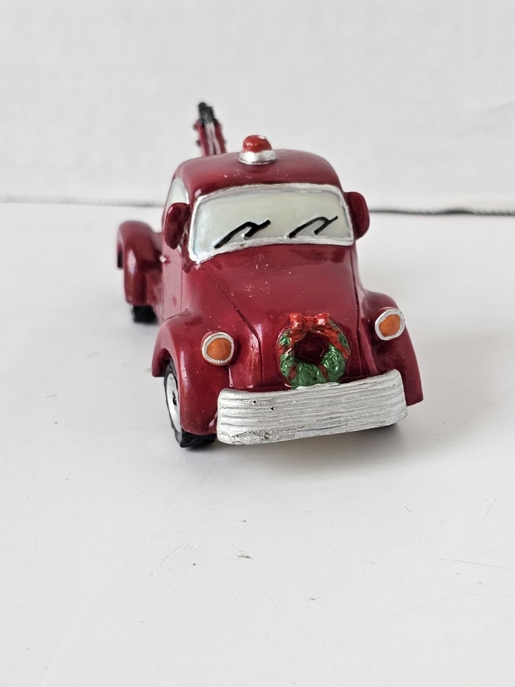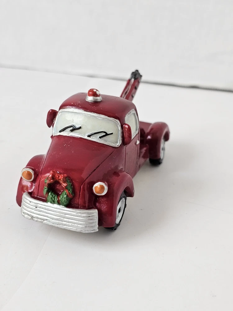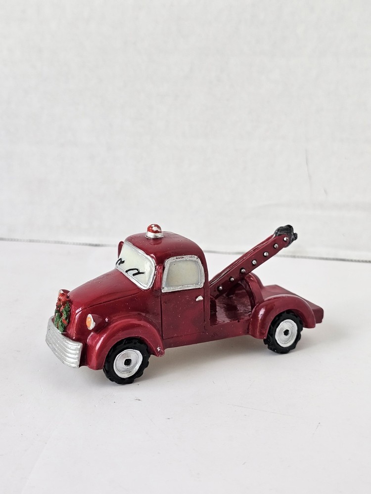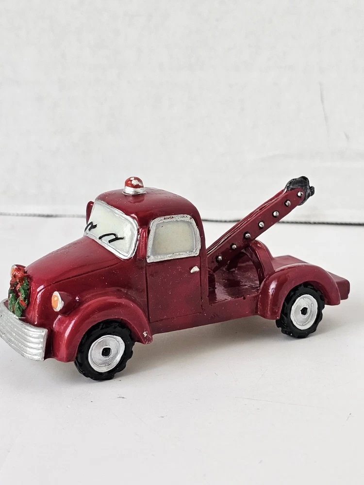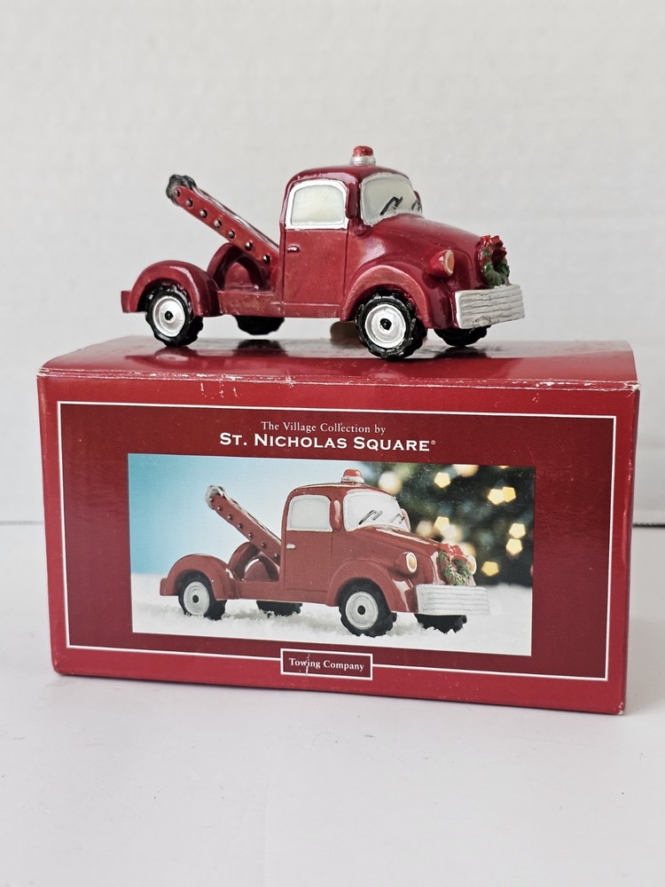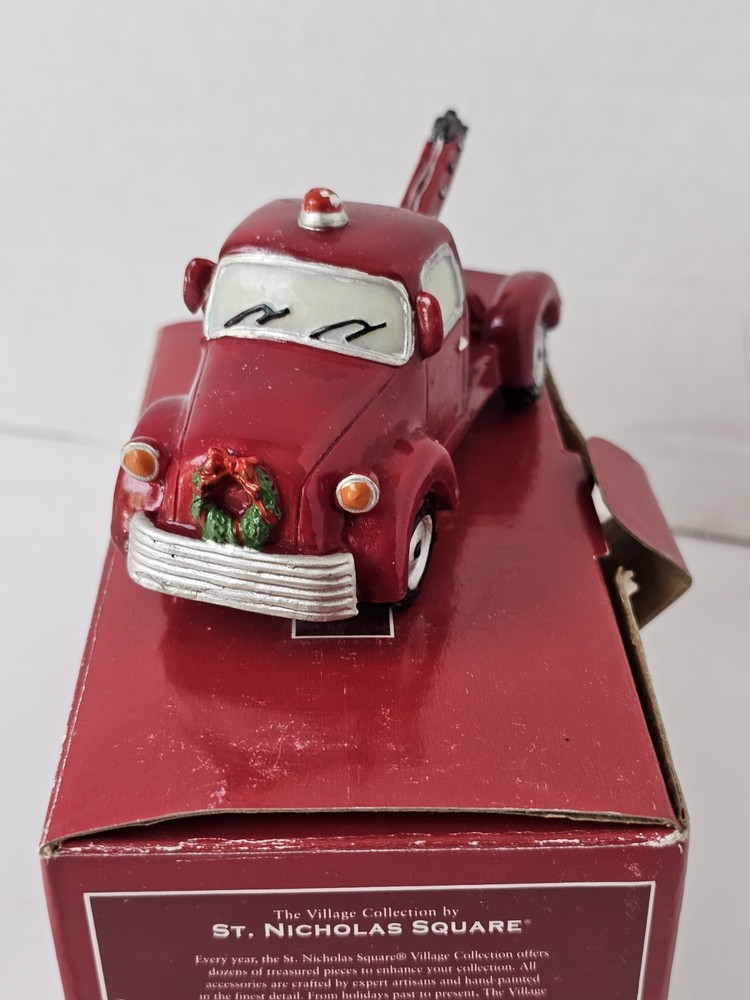 The St. Nicholas Square Christmas Village Towing Company Red Tow Truck is a small, asymmetrical-shaped holiday collectible from the St. Nicholas Square collection. Hand-painted with a traditional style, this porcelain tow truck comes boxed and is a retired piece from 2006. Perfect for Christmas enthusiasts, this seasonal-themed village piece is a unique addition to any collection or holiday décor for both teens and adults. Made in China, this one-piece tow truck features a festive red color and is sure to bring joy to any room during the Christmas season. Nice piece original box