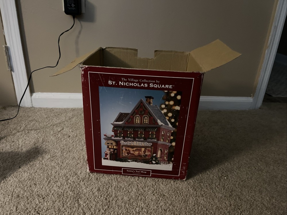 Year Manufactured: 2005 Packaging: Box Color: Multicolor Material: Ceramic & Porcelain Style: Traditional Room: Any Room Era: 21st Century (2000-Now) Finish: Painted Department: Adults Suitable For: Furniture Occasion: Christmas Brand: St. Nicholas Square Type: Christmas Village Subject: Villages Signed: No Antique: No Original/Reproduction: Original Theme: Music, Seasonal Country/Region of Manufacture: China Time Period Manufactured: 2000-2009 Collection: The Village Collection Handmade: No Features: Illuminated, Musical