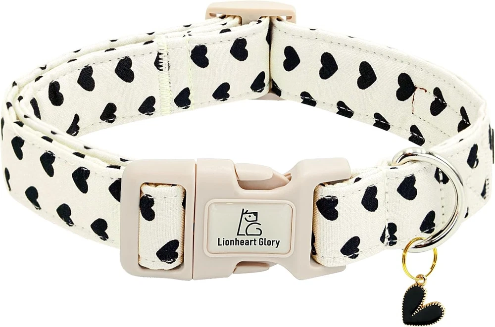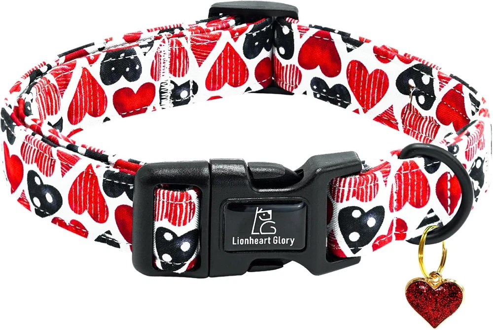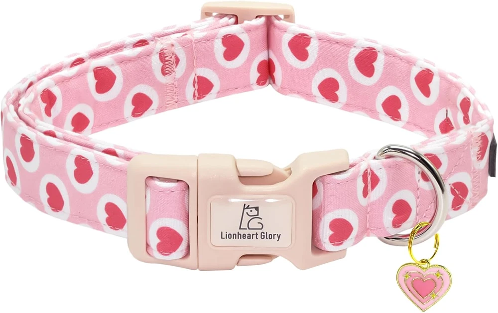 Valentine's Dog Collar with Sailor Bowtie - Pink Heart Adjustable Cotton Hear...