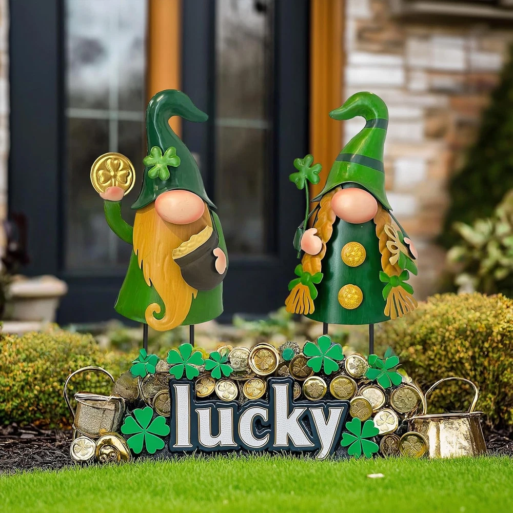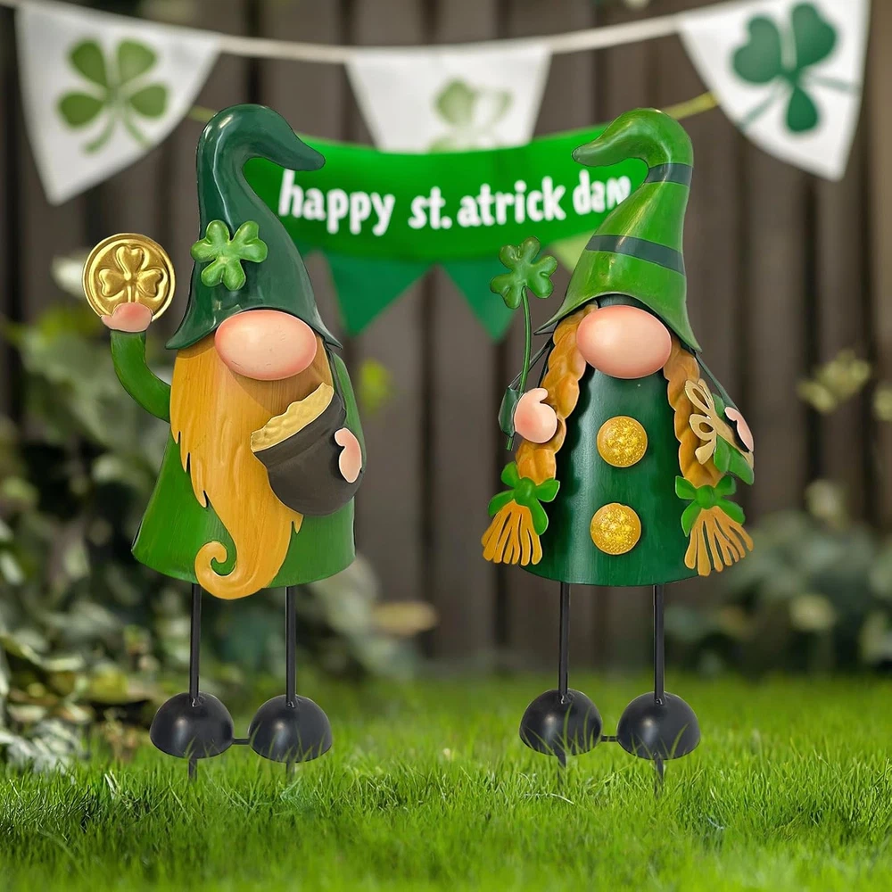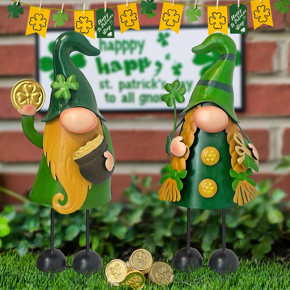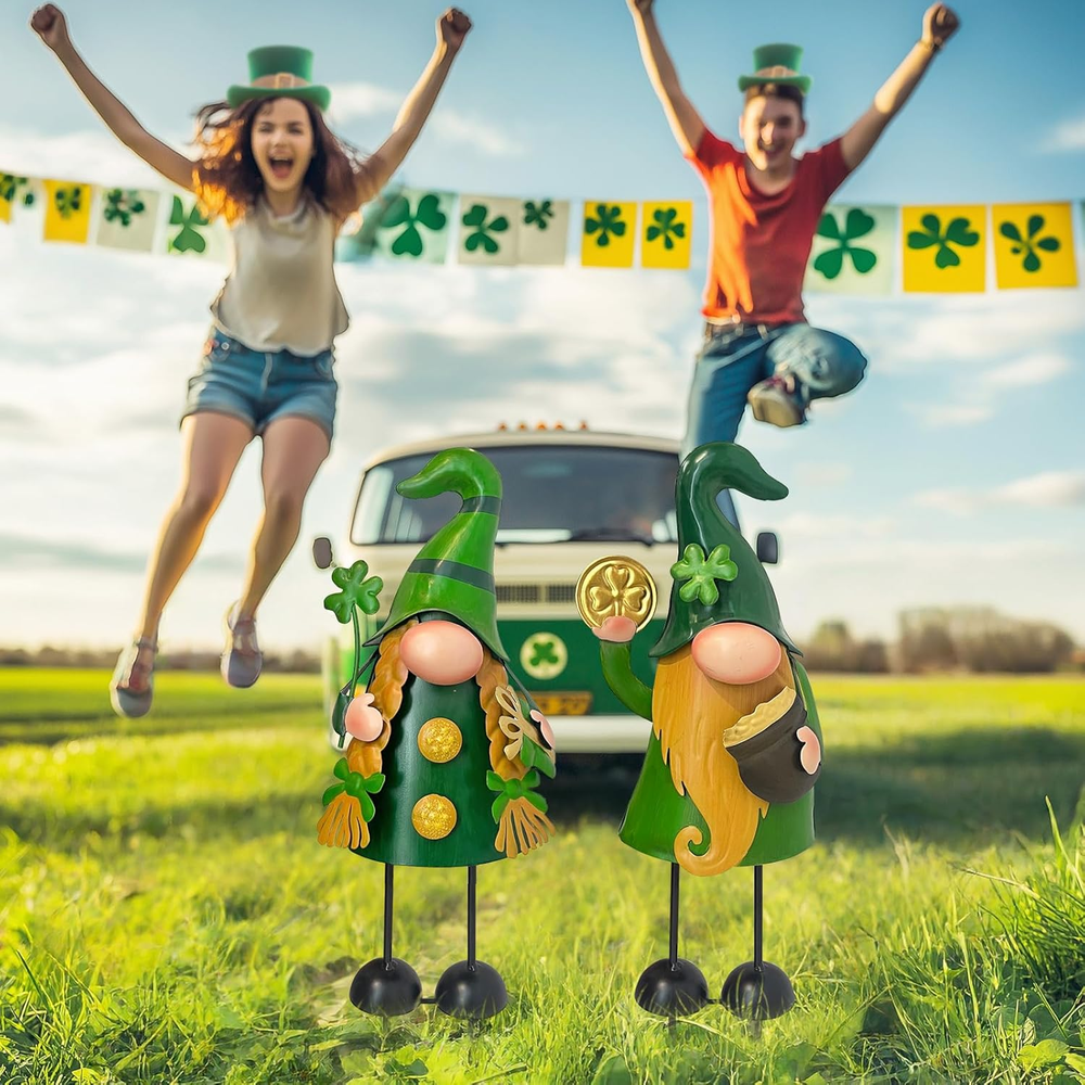 Menu Other Items Feedbacks About Us Contact Us Add To Favorites St Patricks Day Decorations, 18 Inch St Patricks Day Gnomes Outdoor Decor, 2Pc Metal Gnomes Figurine with Green Shamrock, Leprechaun Irish Saint Patrick'S Decor for Home Garden Lawn Party Yard Patio Lucky Metal Yard Art: The green gnomes wear hats adorned with lucky shamrock. The boy gnome holds a golden coin and gold coin jar, narrating a golden legend of wealth, prosperity, and luck. The girl green elf holding shamrock and gift box, warmly invites you to join this enchanting St Patrick's Day wonderland St Patrick's Day Decorations: Bring the enchantment of St. Patrick's Day to your outdoor space with charming gnome stakes, spread the luck & joy of St. Patrick's Day throughout your garden. These whimsical gnome stakes are a perfect addition to any celebration, add your yard a sense of Irish touch Festive Outdoor Decor:The Irish gnome lawn decoration is made of sturdy metal with vibrant colors, waterproof and rainy weather resistant,These Irish garden yard art are ideal for decorating yards, driveways, and hallways at St. Patricks Day Spring Garden Decor:This Irish metal yard art are perfect for any places you want, especially outdoor decorations, such as lawn, yard, balcony, garden, entryway, parties and so on, adding so much fun for your St. Patrick's Day Perfect Holiday Gifts:Unique and heartwarming, these gnome garden decor are the ideal choice for a St. Patrick's Day gift for your special someone. This whimsical and thoughtful gift will bring joy and happiness to your loved ones. Product description Unique Garden Decor Add to Cart Add to Cart Add to Cart Add to Cart Add to Cart Add to Cart Customer Reviews 4.7 out of 5 stars 347 4.6 out of 5 stars 190 4.7 out of 5 stars 347 4.7 out of 5 stars 347 4.7 out of 5 stars 216 4.7 out of 5 stars 216 4.7 out of 5 stars 216 Price $26.97 $ 26 . 97 — $13.52 $ 13 . 52 $30.27 $ 30 . 27 $31.99 $ 31 . 99 $32.79 $ 32 . 79 $31.99 $ 31 . 99 Material Metal Metal Metal Metal Metal Metal Metal Waterproof ✔ ✔ ✔ ✔ ✔ ✔ ✔ Indoor & Outdoor ✔ ✔ ✔ ✔ ✔ ✔ ✔ With solar light ✘ ✘ ✔ ✔ ✘ ✘ ✘ Dimensions 18" H 18" H 18" H 18" H 18" H 15" H 15" H Item Specification Item model number Holiday Style Art Deco Number of Items 1 Mounting Type Floor Mount Color Green&glod Product Dimensions 4"D x 7.5"W x 18"H Material Metal Item Weight 2.66 pounds Batteries required No Theme Holidays Recommended Uses For Product Outdoor FREE SHIPPING We are always working hard to ensure your package arrives as soon as possible. Please understand that some factors like weather, high postal traffic, and the performance of shipping companies are outside of our control. We offer free shipping to the lower 48 states. We do not accept P.O. Boxes. Please provide a physical address. If you have a problem or question regarding your transaction please contact us immediately. We will work with you to resolve any problem you may have. Thank you