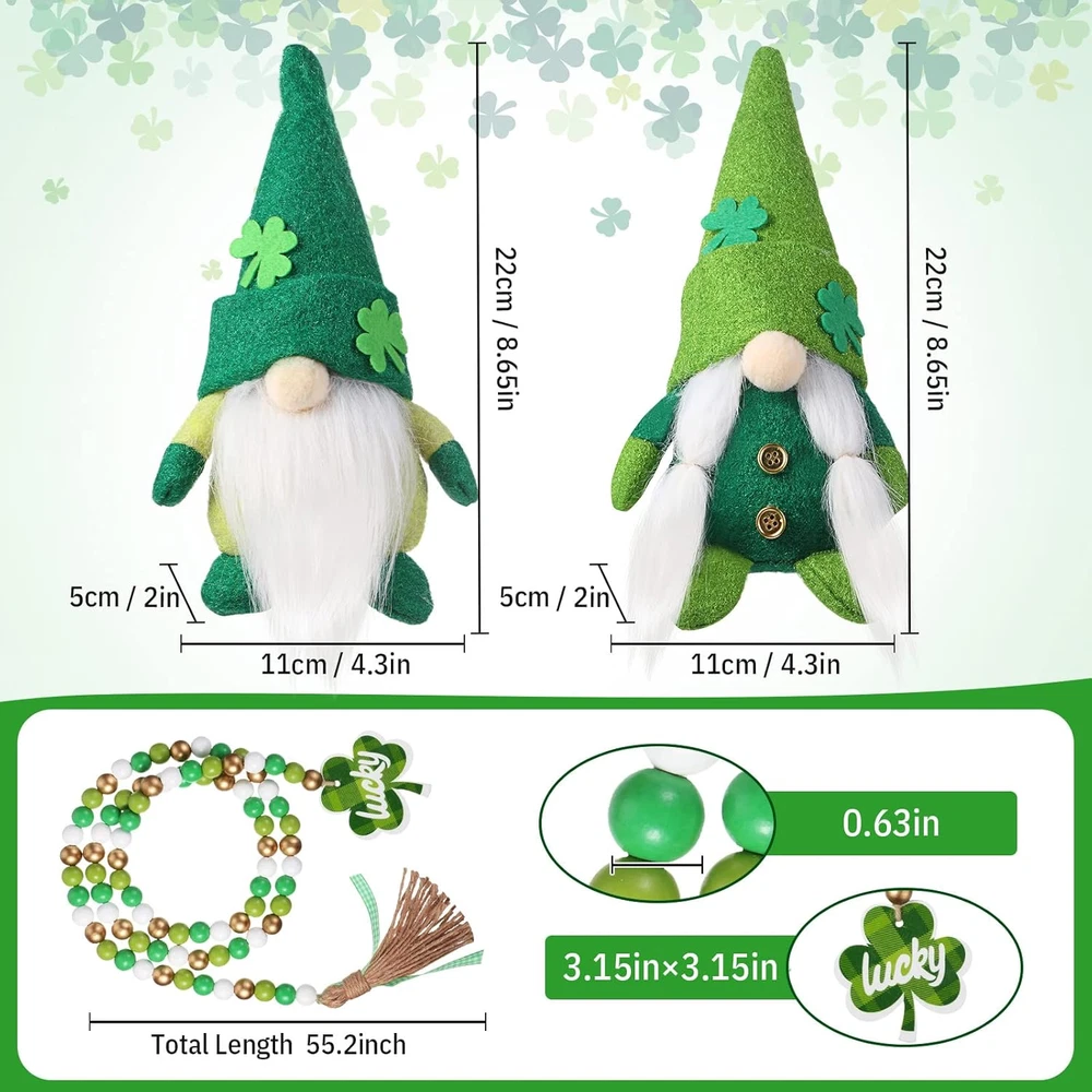 Store New Arrivals Add to Favorite View Feedback Contact Fast deliveries to the customer's home Quality customer service John Make the customers happy! St Patricks Day Decorations 2Pcs St. Patricks Day Gnome Plush Irish Elf Swedish Tomte Leprechaun and 1Pcs St Patrick'S Day Wood Beads Garland with Wooden Green Shamrock Farmhouse Pendant Description Package information: you will receive 2 gnome decors and 1 piece wooden wood bead garland with wooden sign, cute in style, suitable for your boyfriend or girlfriend on holiday Safe and quality material: this gnomes plush is made of soft felt, cotton fabric, and the heavier bottom design allows them to stand on their own; Also this couple gnome doll is handmade, so there will be some variation in size and weight; Our romantic bead garland is made of natural wood beads and quality jute, safe and reliable, exquisite workmanship, no burrs or wood chips Romantic and warm St Patrick's Day gift: this gnome decor is a couple doll, suitable as a St Patrick's Day gift for your beloved, they will love these lovely gifts full of romance and warmth, it is the ideal gift to express love on St Patrick's Day Suitable size: this gnomes plush is divided into 2 different models, which are designed with ideal size, the total length of the wooden bead strand is about 55.2 inches, ideal size for your decorative works Cute and extensive decoration: this couple gnome doll can create a romantic holiday atmosphere for anniversaries, Valentine's Day, St Patrick's Day, Easter, summer and other days, suitable for placing on tables, beds, mantels, stairs, windows, shelves and other places to add a romantic and warm atmosphere Features: Wide range of occasions: This farmhouse festival decor is suitable for Valentine's Day, St Patrick's Day or anniversary to decorate the room to add a romantic holiday atmosphere, or as a gift for your lover. Exquisite and lovely appearance: These gnomes' decorations are exquisite in appearance and reliable in quality, and will stay with you for a long time. Specifications: Material: Gnomes plush: soft felt, cotton fabric Bead garland: wood, jute Color: as pictures show Size: Gnomes plush: approx. 13.39 x 3.94 x 3.15 inches, 12.6 x 3.54 x 2.95 inches Bead garland: approx. 55.2 inches long, 0.63 inches in diameter Small wooden hearts: approx. 3.15 x 3.15 inches Package includes: 1 x Gnomes plush 1 x Bead garland 1 x Small wooden pendent Notes: Manual measurement, please allow slight errors on size. The color may exist slight difference due to different screen displays. Winding risk may exist, please keep away from little kids. Item Weight 10.2 ounces Country of Origin China Package Dimensions 7.95 x 6.73 x 2.99 inches ABOUT US We offer the best prices around on high quality products. Our E-store includes media such as books, movies, music and games while offering electronics, toys, sporting apparel, clothing, tools, general home, garden items and more. SHIPPING We are always working hard to ensure your package arrives as soon as possible. Please understand that some factors like weather, high postal traffic, and the performance of shipping companies are outside of our control. We offer free shipping to the lower 48 states and ship within 2 business days of payment, usually sooner. We do not accept P.O. Boxes. Please provide a physical address. For shipping outside of the continental USA, we only use eBay's Global Shipping Program. The item is shipped to KY and then sent to the rest of the world. International customers are responsible for all duties and taxes. Continue to 'check out' to calculate costs for shipping the item to your country. Messages regarding eBay's Global Shipping Program MUST be directed at eBay EXCLUSIVELY. RETURNS We offer a 30-Day Return Policy on items in which you are not completely satisfied with. You have the option of a full-refund or an exchange of the item. No returns are available on items shipped outside of the USA PAYMENT We accept PayPal. CONTACT US This page content is yet to come Please ad us to your favorite seller and visit again later Thank You CUSTOMER SATISFACTION We try our very best to make sure every customer is completely satisfied. If there's a problem, message us! We're happy to help. WE ACCEPT