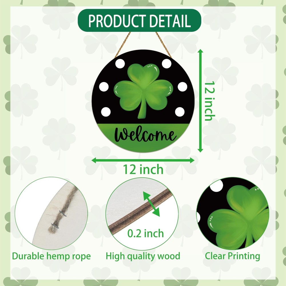Unique Design: The St Patricks Day wreath is printed with shamrocks and the "Welcome" sign, beautiful shamrocks, vivid, simple and beautiful, perfect for decorating your home on St Patricks Day to welcome the holiday Suitable Size: The St Patricks Day door decoration measures 12 x 12 x 0.2 inches. This size is perfect for decorating on the door or wall, the beautiful shamrock attracts attention and comes with hemp rope for easy hanging. You can hang it on your door or wall to bring a St Patricks Day atmosphere to your home High-quality material: The St Patricks Day door decorations are made of high-quality wooden material, sturdy and durable, not easy to break, clear printing, bright colors, not easy to fade, and can be stored and used for a long time Widely Used: This St Patricks Day door hanger can be hung on the front door, back door or room door, can also be used as wall decoration hanging on the wall of the living room, dining room or hallway, so that the area you need to decorate is full of festive atmosphere, adding charm to your home, and bringing different colors to your home Cute Decorations: Cute shamrock decorations to bring a festive atmosphere to your home. You can give it as a present to your family or friends to bring them holiday blessings. Use it for front door decoration to welcome guests or friends