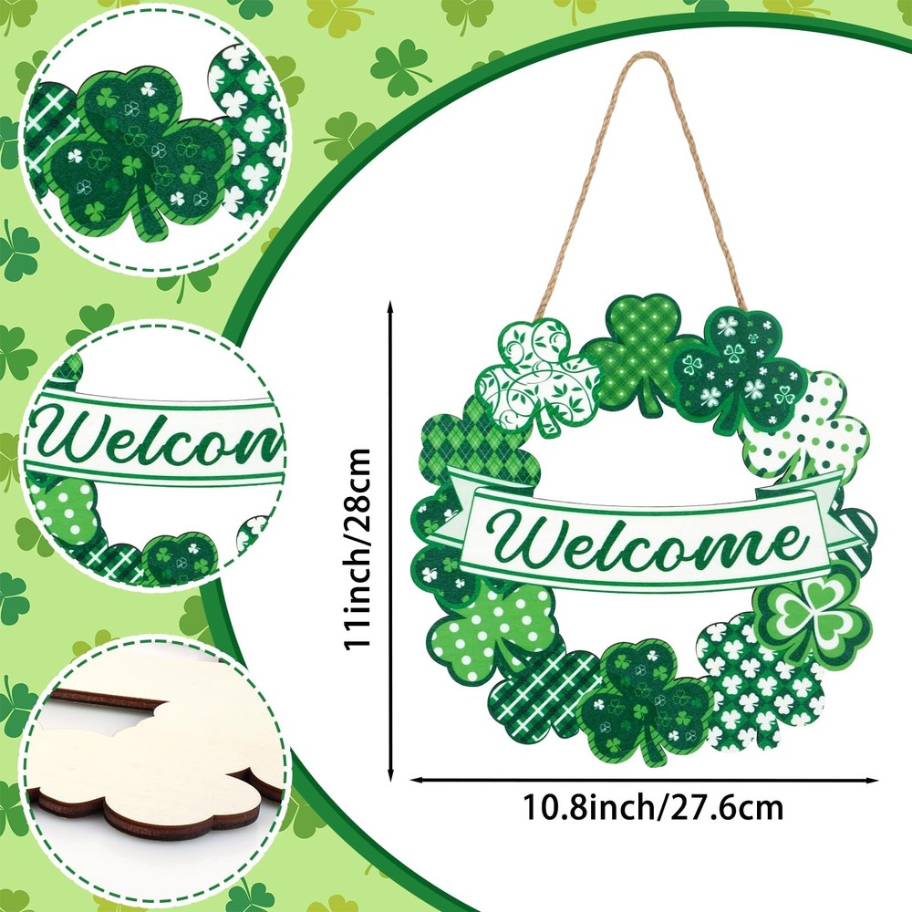 St Patrick's Day Wreath Wooden Shamrock Wreath Front Door Hanger Decor Spring Welcome Decorations for Home St Patricks Day Door Decoration for Front Door Irish Welcome Hanging Sign for Indoor Outdoor St. Patrick's Day Theme Design: This exquisitely crafted St Patrick's Day wreath features shamrock, “Welcome,” stripe, plaid, and polka dot patterns, making it suitable for Irish-themed front door decorations or spring welcome front door hangings decorations Premium Material: The shamrock door wreath for front door sign (10.8x11 inch/27.6x28cm) is crafted from premium wooden, sturdy and substantial. With excellent printing that resists fading or damage, it's reusable and performs excellently every St. Patrick's Day or spring front door hanging, suitable for both indoor and outdoor decoration, it's easy to hang on walls or door Widely Used:Wooden St. Patrick wall signs are suitable for many occasions, like home, farmhouse, kitchen, porch, patio, yard, garden, entryway, bedroom, etc. You can hang Irish sign welcome wreaths on doors, front door, windows, walls, trees, and any places you want to decorations Easy to Use: The St. Patrick's Day shamrock door Wreaths sign do not require assembly and is simple to use; 3D design, giving you a visual enjoyment. This St. Patrick's Day wooden door sign is suitable for gatherings with friends and the holiday party. It also makes an excellent gift for family and liked ones, adding festive cheer to your party Thoughtful Service: Wooden shamrock wreaths make suitable gifts for St. Patrick's Day, Irish festivals, and spring occasions. Your family and friends will be delighted to receive such a heartwarming present! Should you have any questions about our products, please tell us, customer satisfaction is our service goal St Patrick's Day Wreath Wooden Shamrock Wreath Front Door Hanger Decor Spring Welcome Decorations for Home St Patricks Day Door Decoration for Front Door Irish Welcome Hanging Sign for Indoor Outdoor Shipping We offer FREE shipping on all orders! We ship within Three business days of payment, usually sooner. We use a selection of shipping services such as UPS, FedEx, USPS etc. We only ship to the lower 48 states, no APO/FPO addresses or PO Boxes allowed. Local pickups and combined shipping options are not provided at this time. Return You can return a product for up to 30 days from the date you purchased it. Any product you return must be in the same condition you received it and in the original packaging. Please keep the receipt. Payment We accept payment by any of the following methods: PayPal Please pay as soon as possible after winning an auction, as that will allow us to post your item to you sooner! Feedback Customer satisfaction is very important to us. If you have any problem with your order, please contact us and we will do our best to make you satisfied. Contact Us If you have any queries, please contact us via ebay. We usually respond within 24 hours on weekdays. Please visit our eBay store to check out other items for sale! Thank you for shopping at our store.