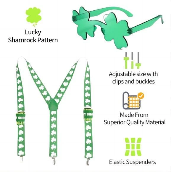 Return Policy Fast Delivery Trusted seller St-Patricks Day Accessories - Suspenders with shot glasses & Green Shamrock Glasses Pack: Party Favors Product Description Shipping Returns Payment Shipping Shipping is FREE to all addresses other than APO/PO boxes in the lower 48 states. All our stock ships from US-based warehouses. Shipped via USPS or UPS (depending on location and package weight) Unless stated otherwise, all orders will ship within 24-72 hours of your payment being processed. Check our feedback to see the great reviews of FAST shipping we offer. Returns Seller does not accept returns Payment We currently accept payment via eBay managed payments only. Once payment is cleared, we will dispatch your shipment within 1-3 business days. Please refer to the "Shipping" tab for more information regarding shipping speed to your destination.