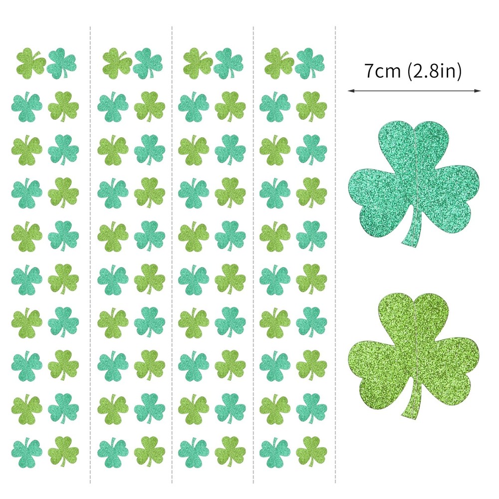 【Package Contains】4 sets of the party banner garland,each is 8.75 feet/ 2.7 meters long, total length is 35 feet/ 10.8 meters.Every Banner has 20pcs shamrock ,the size is 2.8” 【Material】The material is eco-friendly double side gittler dark green and light green which don't drop glitter.You can cut to any length you want if you need shorter length.The shamrock are cut very neatly. 【 Easy to hanging 】Just open the package to hang it directly no need to diy again.Because they have been sewn together, which is really convenient for you. 【Using Occasion】They are perfect for st patricks day decorations,saint patricks day decorations,st patricks day accessories,shamrock decor. 【Quality Guarantee】If you ever have any concern with our paper garlands,just contact us and we"ll make it right! 【Package Contains】4 sets of the party banner garland,each is 8.75 feet/ 2.7 meters long, total length is 35 feet/ 10.8 meters.Every Banner has 20pcs shamrock ,the size is 2.8” 【Material】The material is eco-friendly double side gittler dark green and light green which don't drop glitter.You can cut to any length you want if you need shorter length.The shamrock are cut very neatly. 【 Easy to hanging 】Just open the package to hang it directly no need to diy again.Because they have been sewn together, which is really convenient for you. 【Using Occasion】They are perfect for st patricks day decorations,saint patricks day decorations,st patricks day accessories,shamrock decor. 【Quality Guarantee】If you ever have any concern with our paper garlands,just contact us and we"ll make it right!