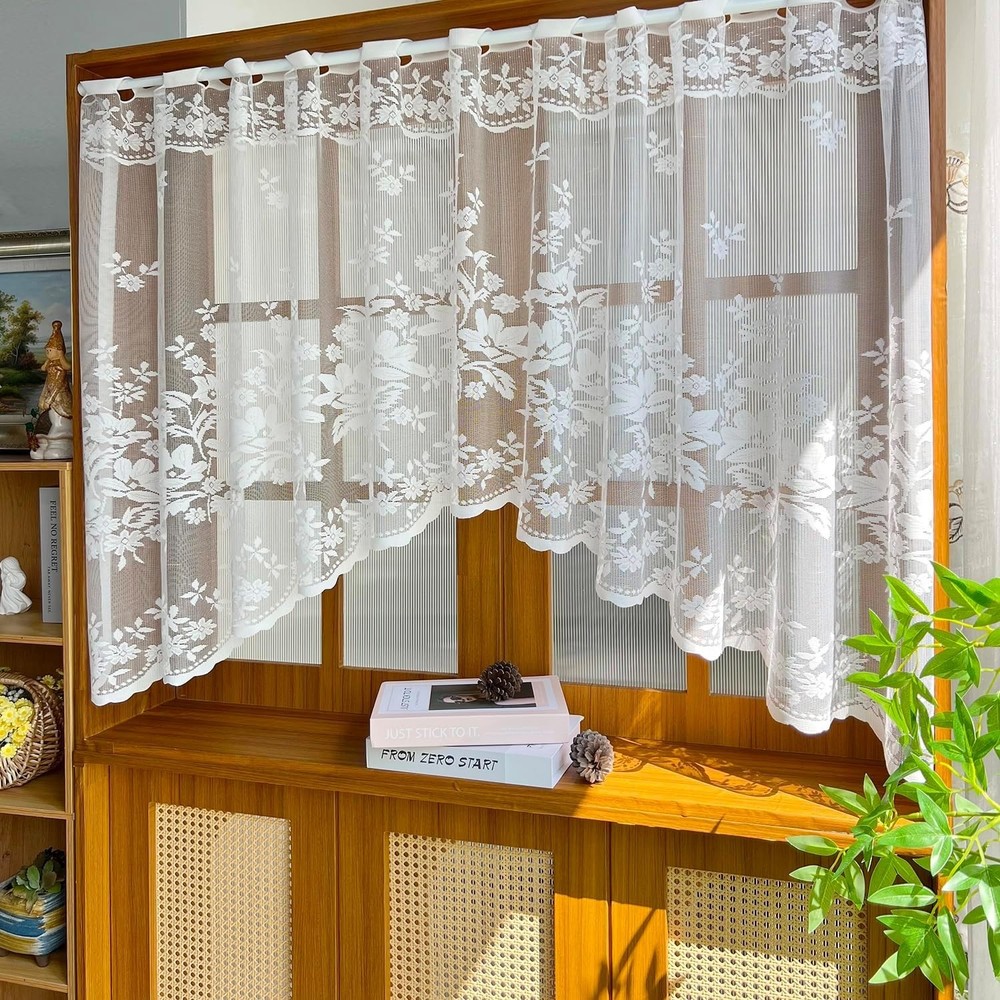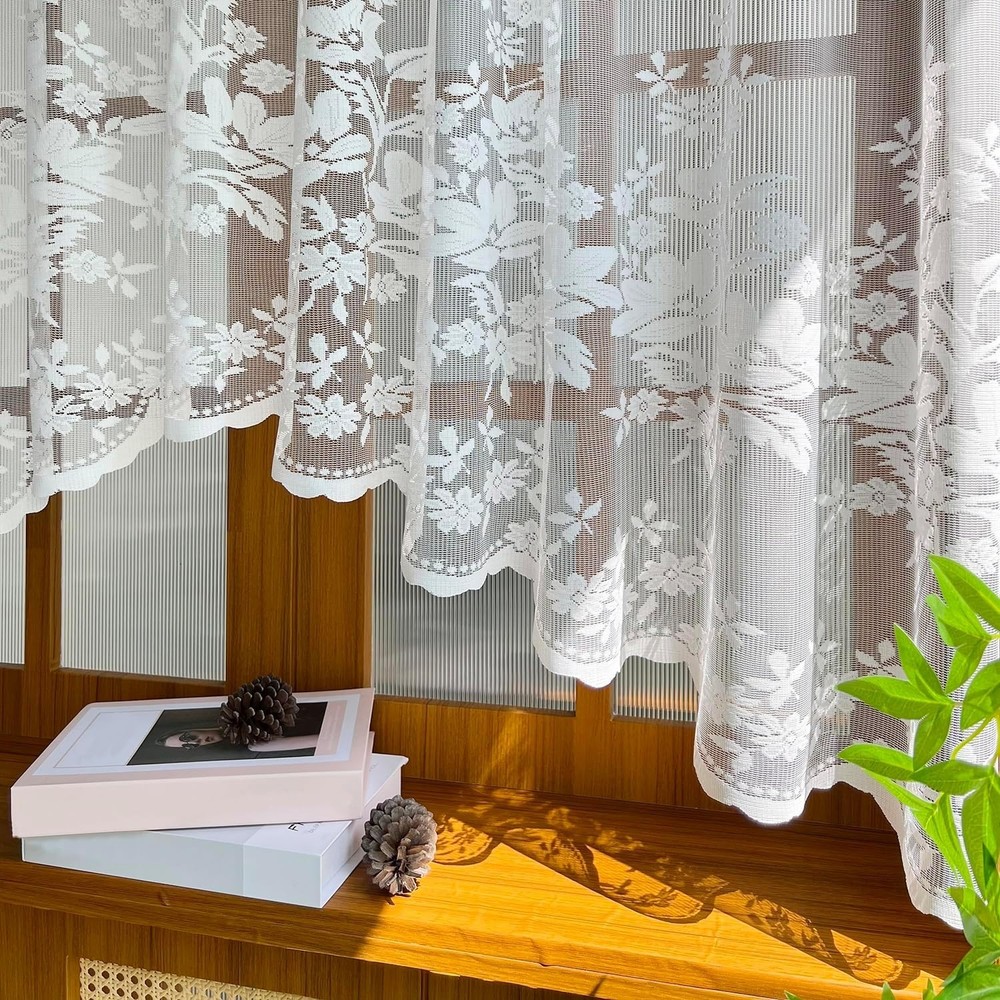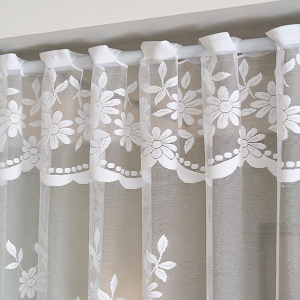 Curtain Stacey Ruffled Swag 63 in x 39 in White Sheer Curtain Doorway Window New Size:63"W x 39"L (Pack of 1) Color: White Material: Polyester Product Dimensions: 39"L x 63"W Opacity Light-filtering PACK: Include 1 panel White Lace Kitchen Curtain Valance, Size Measure 63" wide by 39" wide, curtain rod is not included. FINISH TOP: Rod Pocket Top, suitable for all common telescopic curtain rods. DESIGN: Princess Style Floral Embroidery Sheer Lace Swag Curtain, gives you a relax feeling and elegant look, a best home decor for your room, suitable for Bedroom, Living Room, Dining Room and Studying room. EASY CARE: Machine washable . Low Iron, Dry Naturally. Please note this white lace kitchen curtain is not pure white as A4 paper. NOTE: It is better for your curtain's width to be 1.5-2 times of your window's width, please choose the right size needed. Return Policy: We offer a 30 day return policy from the receiving date. Please contact us for a Free Return Label. Please use our return label so it will go back to our supplier and we can do a refund or replacement afterwards. Feedback: Your satisfaction is very important to us! If you have any problem with your order, please contact us and we will do our very best to make you satisfied. As long as you are happy with your purchase, please leave a positive feedback for us. We will always leave you a positive feedback in return. If you have any problem with your purchase, please do not leave a negative feedback. Please Contact us ... and your issue will be solved quickly and positively We are a small family-owned business trying to make a living, not a huge company that does not care ... We will ALWAYS do our best for you!