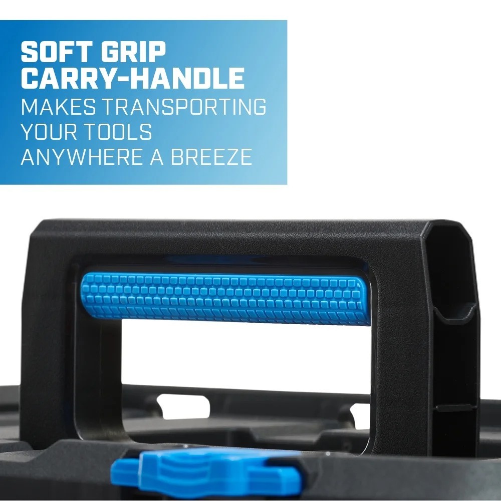 Product details The Stack Mobile Toolbox offers a super friendly way to keep your tools close at hand. With its durable, lightweight construction, soft grip carry-handle, and ergonomic metal latches, transporting your tools around your home, shed or garage, is a breeze. Open up the toolbox, and you’ve got a good-sized storage compartment for larger items, and a handy lift out tray for extra organization. Keep your tools and accessories securely stored and ready to use for your next DIY or hobby project. The Stack Mobile Toolbox can be easily connected to the Stack Mobile Cart and Organizer, creating a versatile all-in-one tool and accessories storage and transport solution for your DIY or crafting needs. Stack System 21 Inch Tool Box, Fits Modular Storage System Interior organizer tray Heavy-duty latches Reinforced hinge Reinforced Locking Point Delivers increased durability Loading Capacity - 66 LBS
