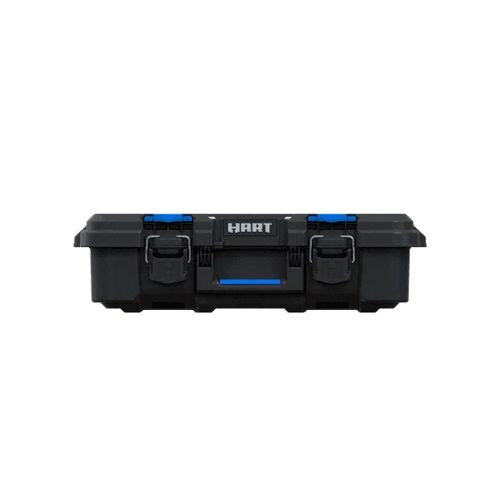 Product details Are you looking for a power tool case that offers custom protection for your power tools or hand tools: Hart knows better than anyone that power tools and hand tools come in all shapes and sizes. The Hart suitcase style tool box with the blue tool and parts organizer can be customized by adding foam filling inside the case to match the exact shape of your specific parts, tools, blades, markers, brushes, paints, or whatever else you want held in place (foam not included). Keeping your tools in great shape has never been more personal! Hart Stack System Power Tool Case with Small Tool Blue Internal Case with Blue Dividers, Mobile Tool Storage and Organization, Black with Blue Accents Features: Ideal case for weekend warriors, home DIY-ers and serious crafters Serves as a Power Tool Case, and allows you to customize foam filling for your specific power tools or accessories (Note: foam is not included in the product) Ergonomic carry handle for convenient portability IP54 seal protects your tools from dust, moisture, and accidental contact with water – making it ideal for outdoor use Durable plastic construction defends contents from dings and knocks Metal latches securely fasten the case at all times, especially when you're on the move The HART Power Tool Case has an opening for you to insert a padlock keeping your belongings safe from theft (lock not included) Internal blue small tool organizer case and dividers keep your hardware and small tools handy. Keep your small parts tidy & handy with a movable organizer case & 2 dividers included. The organizer can either be clipped inside for internal storage or stacked on top of the case for easy access. Can be easily stacked onto any of the storage units within the HART Stack System Load Capacity - 47.5 LBS