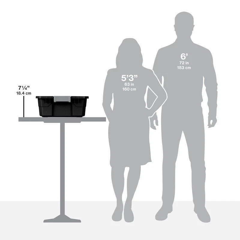 You may also like Heavy Duty Waterproof Shower Curtain Liner Mildew Resistant W/ 12 Metal Eyelets 8.21 USD 8.64 USD Free shipping 5% off Lucinda Green 12PC Dinnerware Set Stoneware Scalloped Design Dishwasher Safe New 59.35 USD 62.47 USD Free shipping 5% off 50 Pack Plastic Hangers Collegiate Colors Durable Clothes Organizer Teens Adults 11.01 USD 11.59 USD Free shipping 5% off Rubber Curb Driveway Ramp Non-Slip For 3.7" Rise 39.4" Wide 33069lbs Load Black 52.78 USD 55.56 USD Free shipping 5% off Heavy Duty Grommet Shower Liner Mildew Resistant Waterproof W/ Magnets & Eyelets 10.1 USD 10.63 USD Free shipping 5% off 6pc Cotton Bath Towel Set Quick Dry Anti-Microbial Soft Absorbent Lint Free New 23.53 USD 24.77 USD Free shipping 5% off Recycled Super Bulky Yarn Eco Friendly Warm Crochet Knit Craft Supplies Olive US 9.75 USD 10.26 USD Free shipping 5% off 7.5Qt Multi-Cooker Automatic Stirring Shredding 9 Cooking Presets Non-Stick New 101.26 USD Free shipping Glass Mixing Bowl 4Qt Microwave Dishwasher Safe Extra Durable Kitchen Use 10.66 USD 11.22 USD Free shipping 5% off 12-Piece Floral Dinnerware Set Stoneware Dishwasher Microwave Safe Dining Set US 58.64 USD 61.73 USD Free shipping 5% off 12 Piece Dinnerware Set Stoneware Plates Bowls Dishwasher Microwave Safe New 80.57 USD 84.81 USD Free shipping 5% off Large Wardrobe Moving Boxes Bundle of 3 Heavy Duty Clothes Storage Solutions New 69.95 USD 73.63 USD Free shipping 5% off In need of a durable storage system for closets, basements, garages, or attics? The Sterilite Modular Stacker line features rugged construction for added peace of mind that contents will stay safely stored inside. The 10 Gallon Stacker Tote is the perfect size for linens, towels, small household tools and supplies, and the opaque base allows contents to be out of sight. Neatly slide under a bed to take advantage of unused storage space. The robust latches offer extra security that the lid will stay attached to the base, and the textured surface makes for a sure grip when carrying. The deep recessed lids provide stability when stacking for efficient use of storage space. The 10 Gal Stacker Tote shares the same lid as the 19 and 27 Gal Stacker Totes allowing secure stacking of both the shallow and deep storage boxes in one footprint. The overall assembled dimensions of this item are 25 3/4" L x 18 3/8" W x 7 1/4" H. Sterilite 10 Gallon Stacker Tote, Durable Plastic Bin with Latch Lid, Black, 6 Count Outside Dimensions: 25 3/4" x 18 3/8" x 7 1/4" Interior Dimensions at bottom: 20 7/8" x 15" x 6 3/4" This durable storage solution is ideal for garages, basements, attics, and more Heavy duty latches help to secure the lid to the base and provide a sure grip surface Deep indexed lid surface allows multiple totes to stack securely BPA-free and phthalate-free Turn-N-Tube 3 Tier Storage Shelf Indoor Furniture Kid Friendly Easy Assembly New 33.23 USD 34.98 USD Free shipping 5% off Bamboo Stackable Shelf Kitchen Storage Organizer Durable Space Saving Solution 17.4 USD 18.32 USD Free shipping 5% off Handwoven Seagrass Storage Basket W/ Handles Organizing Home Essentials New 23.75 USD 25.0 USD Free shipping 5% off 4-Tier Kitchen Storage Shelf Freestanding Toolless Easy Assembly Durable Design 82.94 USD 87.31 USD Free shipping 5% off Hardwood Hangers W/ Swivel Hook Heavy Duty Clothes Hangers Space Saving Design 21.7 USD Free shipping Rustic Round Accent Table Wood Frame Farmhouse Indoor Decor Modern Side Table US 86.25 USD Free shipping 5-Tier Turn-N-Tube Storage Shelf Freestanding Composite Wood Organizer DIY New 44.2 USD 46.53 USD Free shipping 5% off Cube Storage Quad Inserts Set of 2 Dividers Organizer Shelves Easy Assembly New 21.91 USD 23.06 USD Free shipping 5% off Kids Velvet Hangers 50 Pack Non Slip Flocked Shirt Hangers Butterfly Icon New 29.23 USD 30.77 USD Free shipping 5% off Pentagon Ottoman Soft Foam Upholstered Seating Modern Accent Indoor Furniture US 76.98 USD 81.03 USD Free shipping 5% off Elegant Nevin Drink Table Round Marble Top Silver Iron Base Accent Table New 87.86 USD 92.48 USD Free shipping 5% off Heavy Duty Galvanized Steel Storage Shelf Adjustable Rack Garage Workshop New 73.62 USD 77.5 USD Free shipping 5% off