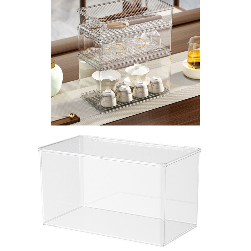 Features: Keep tea set organized and dust-free with our clear storage box. Made of durable PET material, this storage box is stackable, allowing you to save spaces and easily access tea set. Great for those who enjoy entertaining guests with teas or for those who want to keep their tea set stored away. This storage box will ensure that tea set stays clean and organized. Our convenient and stylish tea set storage box, designed to make life easier and more enjoyable. Specifications: Material:PET Size: Approx.15.2x14.2x6cm/5.98x5.59x2.36" Approx.15.2X14.2x9.4cm 5.98x5.59x3.7 B1:Approx.27x16.2x6cm/10.62x6.37x2.36" B2:Approx.27x16.2x9.2cm/10.62x6.37x3.62" B3:Approx.27x16.2x15cm/10.62x6.37x5.9" Drain Board:Approx.25.5x13.8x0.8cm/10.03x5.43x0.31" Package Includes: 1 Piece Stroage Box note: Please allow 1-2cm errors due to manual measurement,Please make sure that you do not mind before you order. Due to the difference between different monitors, the picture may not reflect the actual color of the item.