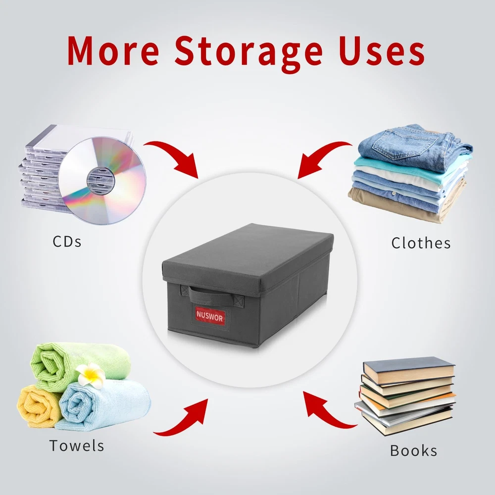 If you're a movie buff, then our DVD case holder organizer is a must-have accessory for you. This stackable DVD storage box offers the perfect solution to protect, organize, and store your DVDs. The box is skillfully crafted from thick non-woven fabric and high stiffness cardboard, ensuring durability and long-lasting use. Its clever design allows for categorized storage, making it quick and easy to find the DVD you want. It also isolates dust and prevents scratches, ensuring your collection remains in pristine condition. It can hold up to 25 DVDs in cases and can be easily stacked for convenient storage. Say goodbye to clutter and hello to a neat, tidy space with our DVD Case Storage Box & Organizer. 【Ample Space & Easy Access】With our DVD Case Holder Organizer, say goodbye to cluttered DVDs. It's designed to hold up to 25 DVDs in cases, making it quick and easy to find the DVDs you need while keeping your space neat and tidy. 【Quality Material & Durability】Made from thick non-woven fabric and high stiffness cardboard, our DVD Storage Boxes promise to provide enduring service. It's a perfect fit for DVD enthusiasts who value their collection and want their storage options to last. 【Protective & Secure】Say no to scratches and dust. Our DVD Storage boxes offer optimum protection for your treasured DVDs. The lid helps isolate dust, while the sturdy build prevents your collection from scratches. 【Stackable for Convenience】This DVD holder box is designed to be stackable, offering you maximum space utility. By stacking your DVD Cases, you optimize space and make room for even more DVDs in the future. 【Sized to Perfectly Fit】At 15.75 x 8.1 x 6.1 inches, our DVD Holder Organizer is designed for you. It's just the right size to categorize your DVDs efficiently and fits seamlessly into your entertainment center or on your bookshelf.