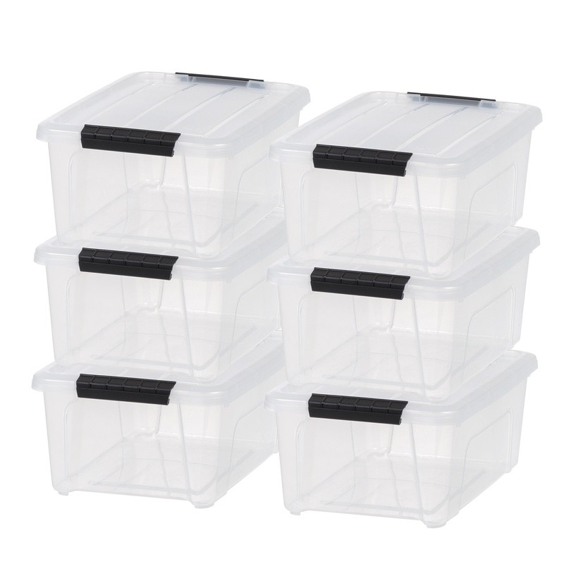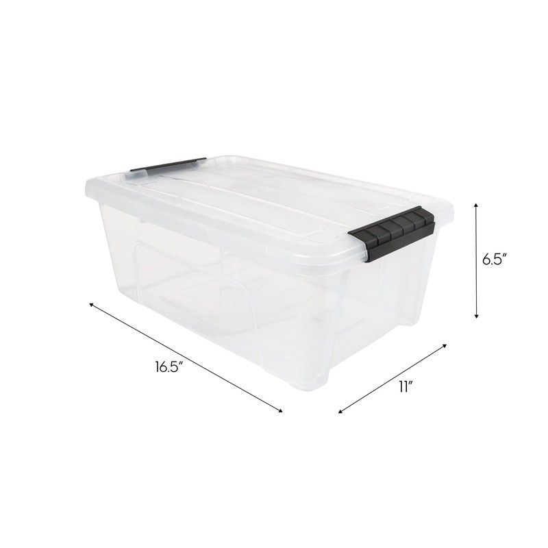 Item Height: 6.50 in MPN: Does not apply Theme: Minimalist Number of Items in Set: 6 Item Weight: 15 lb Item Width: 11.00 in Capacity: 40 Quarts & Below Size: Medium Material: Plastic Number of Compartments: 1 Brand: Unbranded Color: Clear gtin13: Does not apply Shape: Rectangle Finish: Smooth Item Length: 16.50 in Assembly Required: No Type: Container Pattern: Solid Print Features: Lidded, Stackable Model: Does not apply UPC: Does not apply Number in Pack: 6