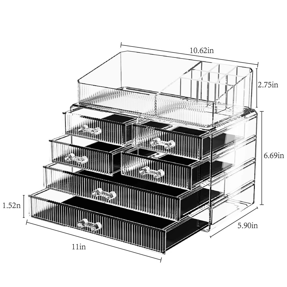 The makeup organizer is the perfect bathroom and vanity organizer for all your cosmetics and jewelry needs. Its clear design allows for easy visibility of all your favorite products, while its flexible design ensures you can customize it to your specific needs. The makeup organizer for vanity is also stackable, allowing you to easily add additional organizers as needed to create a customized storage solution. It is also perfect for use in the office, bedroom, or anywhere else you need to keep your items organized and easily accessible. With ample storage space, this make up organizers and storage is perfect for storing all your favorite makeup products, jewelry, and other accessories. The bathroom organizer features several compartments and drawers that are perfect for storing eyeshadows, lipsticks, brushes, and other makeup products. The jewelry holder organizer and storage capabilities of this product are unparalleled, with a variety of compartments and drawers to keep everything perfectly organized. Whether you’re just starting out with makeup or have a collection of products, this organizer is perfect for keeping everything in one easy-to-find place. Whether you're a makeup enthusiast or just looking for a way to keep your accessories organized, the Makeup Organizer is the perfect choice. So why wait? Order yours today and start enjoying a clutter-free and organized space!