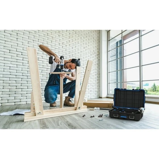 Are you looking for a power tool case that offers custom protection for your power tools or hand tools: Hart knows better than anyone that power tools and hand tools come in all shapes and sizes. The Hart suitcase style tool box with the blue tool and parts organizer can be customized by adding foam filling inside the case to match the exact shape of your specific parts, tools, blades, markers, brushes, paints, or whatever else you want held in place (foam not included). Keeping your tools in great shape has never been more personal! Hart Stack System Power Tool Case with Small Tool Blue Internal Case with Blue Dividers, Mobile Tool Storage and Organization, Black with Blue Accents Features: Ideal case for weekend warriors, home DIY-ers and serious crafters Serves as a Power Tool Case, and allows you to customize foam filling for your specific power tools or accessories (Note: foam is not included in the product) Ergonomic carry handle for convenient portability IP54 seal protects your tools from dust, moisture, and accidental contact with water – making it ideal for outdoor use Durable plastic construction defends contents from dings and knocks Metal latches securely fasten the case at all times, especially when you're on the move The HART Power Tool Case has an opening for you to insert a padlock keeping your belongings safe from theft (lock not included) Internal blue small tool organizer case and dividers keep your hardware and small tools handy. Keep your small parts tidy & handy with a movable organizer case & 2 dividers included. The organizer can either be clipped inside for internal storage or stacked on top of the case for easy access. Can be easily stacked onto any of the storage units within the HART Stack System Load Capacity - 47.5 LBS