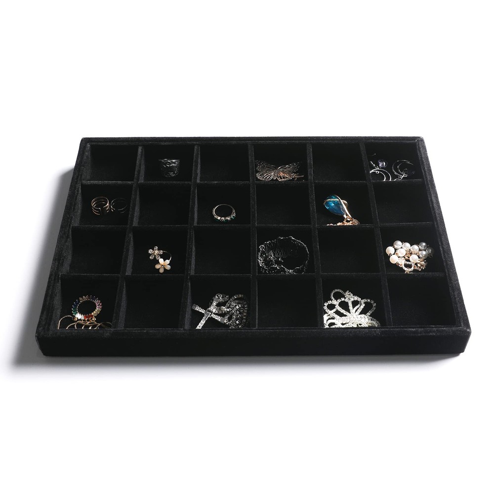 SET OF 2: The set includes 2 trays,12 Compartment Tray(1 pc) and 24 Compartment Tray(1 pc),Each tray measures 12.5x8.5x1.2,Convenient and roomy enough for you to store and wear your different jewelry. HIGH QUALITY VELVET MATERIAL: Our products are full covered with high-quality velvet,which feels smooth, looks elegant and soft enough to protect your jewelry from scratches and damage. STACKABLE AND ADJUSTABLE: Our jewelry trays can be stacked, easy to put on the dressing table or drawer, the dividers of the 12 grid and 24 grid trays are easy to remove to fit for your different size jewelry, Easy to organize and save space. SUITABLE FOR MULTIPLE SCENARIOS:You can put it on the dressing table or drawer to organize your personal jewelry like earrings, necklaces, bracelets, rings, brooches, pins, watches and so on., and it is also ideal for displaying a variety of beautiful jewelry in the jewelry store or trade shows. BEST GIFT:Such a practical and elegant jewelry tray is definitely a ideal gift for Anniversary,Mother’s Day,Birthday, Thanksgiving, Christmas to your girlfriend, wife, daughter, mother or any other important female in your life.