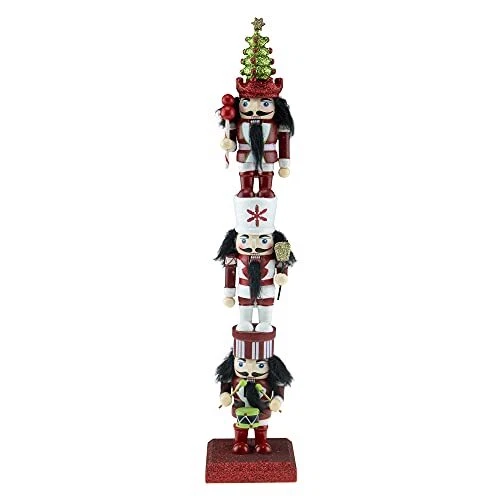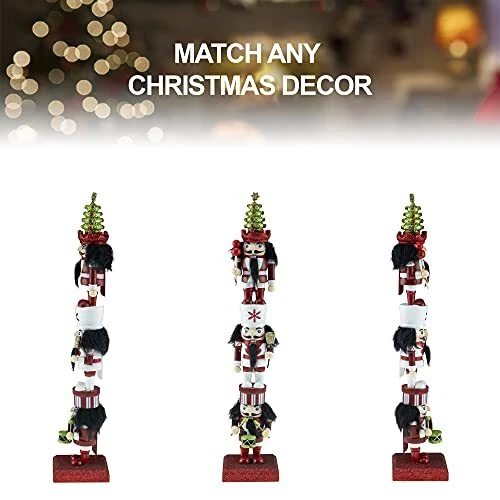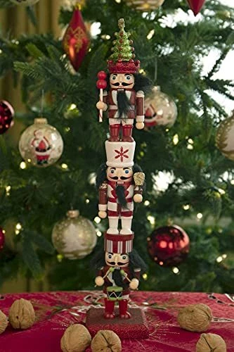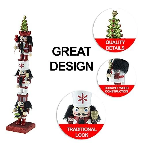 Stacked Nutcrackers 15 Inch Traditional Wooden 15 inch Red Ornament Stack