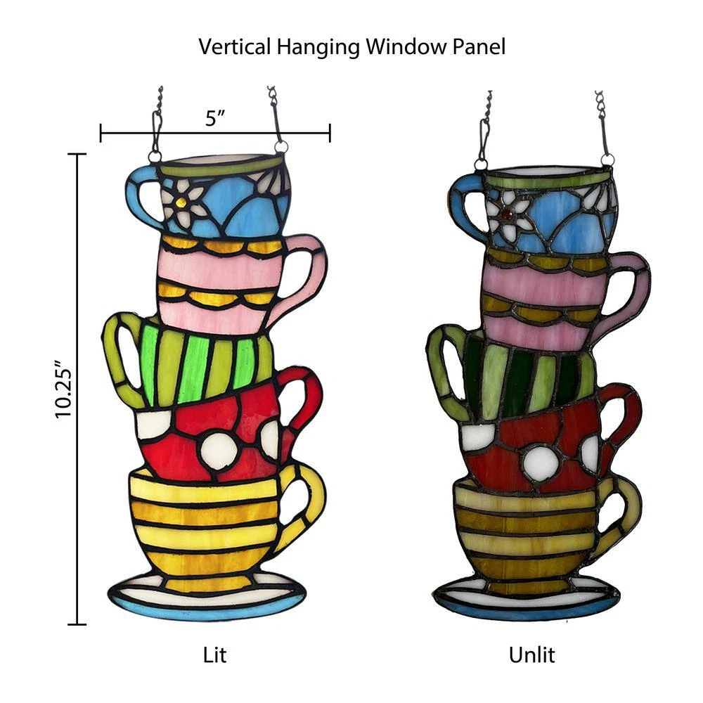 Store New Arrivals Add to Favorite View Feedback Contact Stacked Teacups Stained Glass Window Panel Description Color Family Multi-Colored Color/Finish Pink Includes Hanging Hardware Material Glass Number of Pieces Included 1 Orientation Vertical Product Weight (lb) 0.54 lb Returnable 90-Day Style Cottage,Farmhouse,Shabby Chic Theme Novelty Wall Decor Type Decorative Art Panel Product Depth (in) 0.25 in Product Height (in) 22 in Product Width (in) 5 in Unique stained glass panel with a stack of five teacups Made from 64-cuts in pink, blue, green and red hues for charm Includes 24' metal link chain to hang vertically Accent any sunny window with a touch of whimsy with this Stacked Teacups Stained Glass Window Panel. Made from 64 glass cuts in pink, blue, green, red and yellow hues, this unique window panel is designed as five teacups with different prints and color schemes stacked atop one another with a saucer at the bottom. An easy pairing with farmhouse or cottage-style decor, you can hang it in any sunny window with the included 24 in. metal link chain to fill your space with a dazzling array of colorful light. Charming stained glass panel for hanging in a sunny window Showcases a stack of five colorful patterned tea cups Made with 64-cuts of pink, blue, green, red and yellow glass Perfect for shabby chic, cottage and farmhouse home decor Includes a 24 in. chain for easy hanging Clean with a damp cloth or with lemon oil polish; dry with a clean, dry cloth 5 in. L x 0.25 in. W x 10.25 in. H ABOUT US We offer the best prices around on high quality products. Our E-store includes tools, general home, garden items and more. SHIPPING We are always working hard to ensure your package arrives as soon as possible. Please understand that some factors like weather, high postal traffic, and the performance of shipping companies are outside of our control. We offer free shipping to the lower 48 states and ship within 4 business days of payment, usually sooner. We do not accept P.O. Boxes. Please provide a physical address. RETURNS We offer a 30-Day Return Policy on items which you are not completely satisfied with. You have the option for a full-refund or an exchange of the item. No returns are available on items shipped outside of the USA. PAYMENT We accept PayPal. CONTACT US This page content is yet to come Please ad us to your favorite seller and visit again later Thank You CUSTOMER SATISFACTION We try our very best to make sure every customer is completely satisfied. If there's a problem, message us! We're happy to help. WE ACCEPT Copyright © 2017 AutoDs. | All Rights Reserved